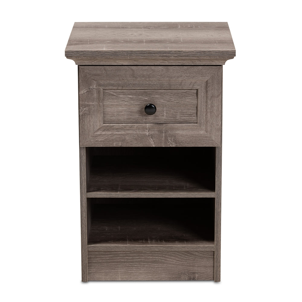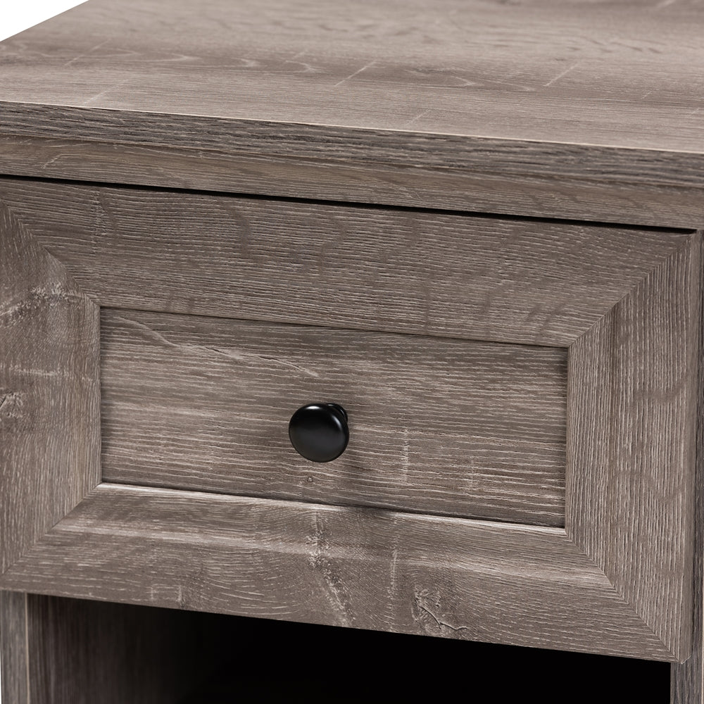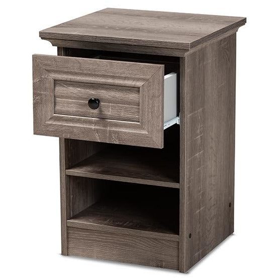 Dara Traditional Transitional Grey Brown Oak Finished 1-Drawer Wood Nightstand