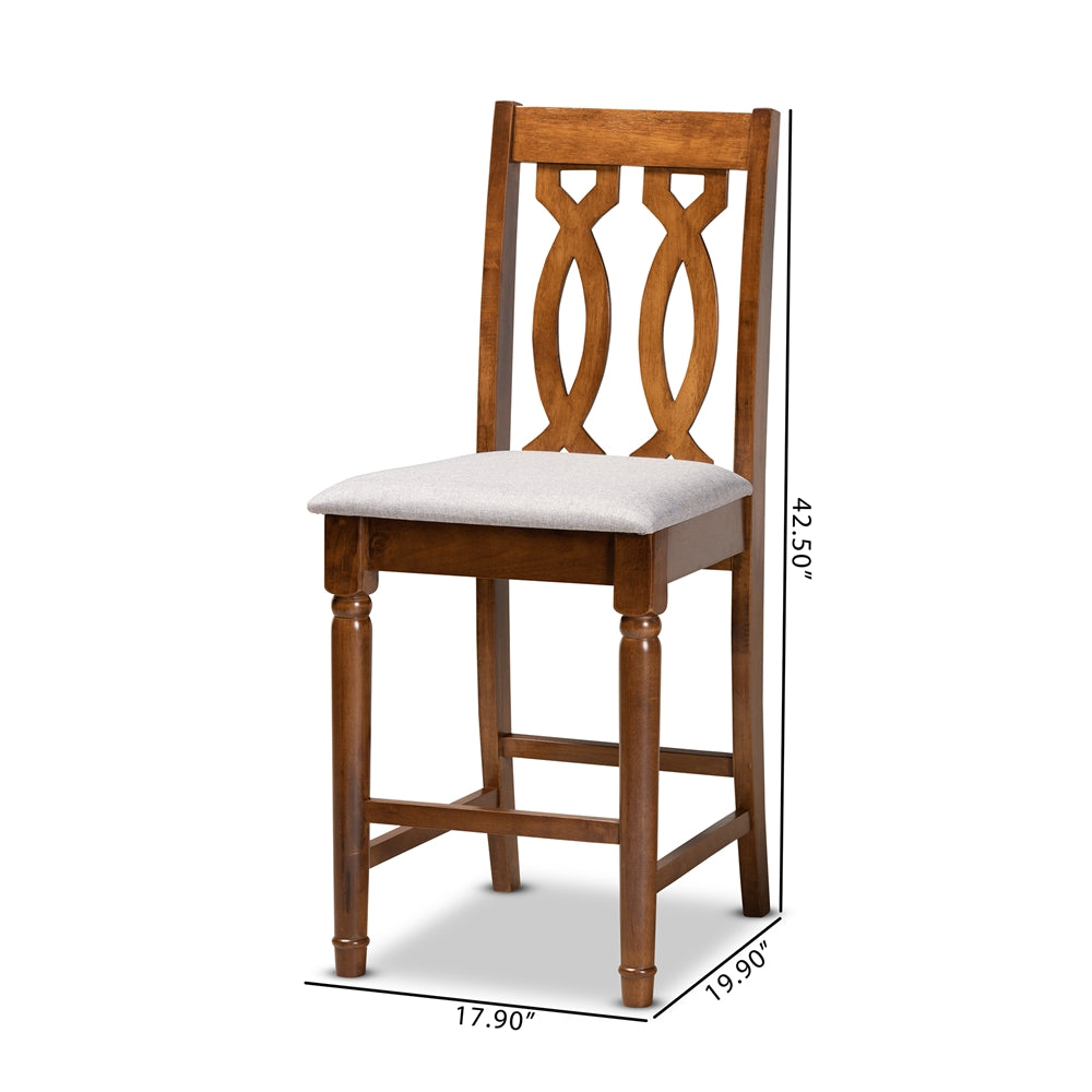 Darcie Modern and Contemporary Grey Fabric Upholstered and Walnut Brown Finished Wood 2-Piece Counter Stool Set