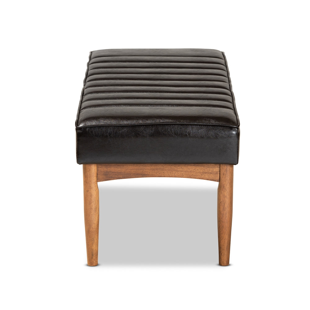 Daymond Mid-Century Modern Dark Brown Faux Leather Upholstered and Walnut Brown Finished Wood Dining Bench