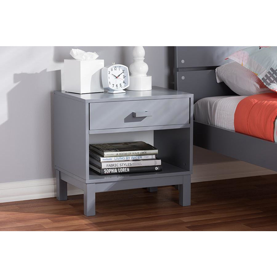 Deirdre Modern and Contemporary Grey Wood 1-Drawer Nightstand