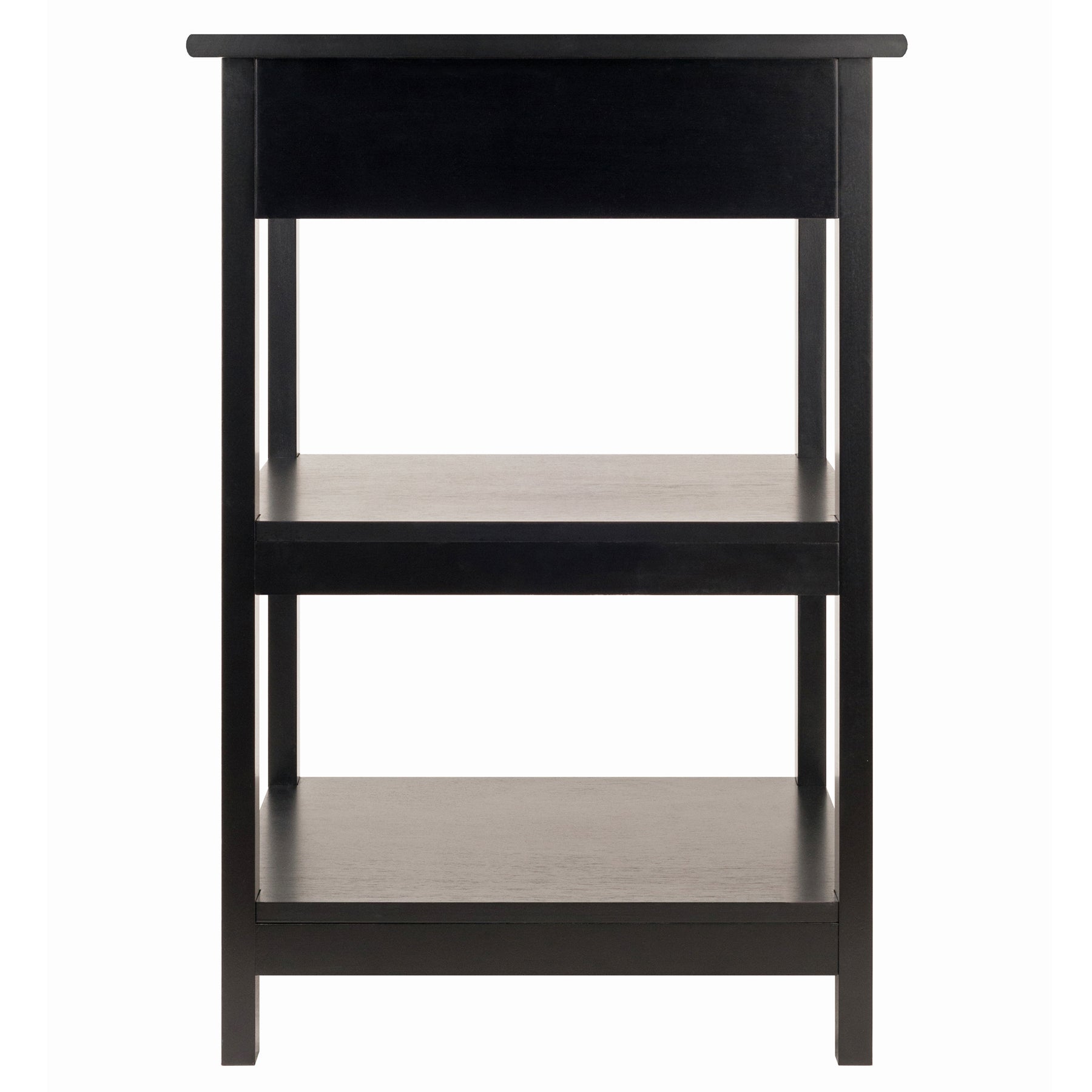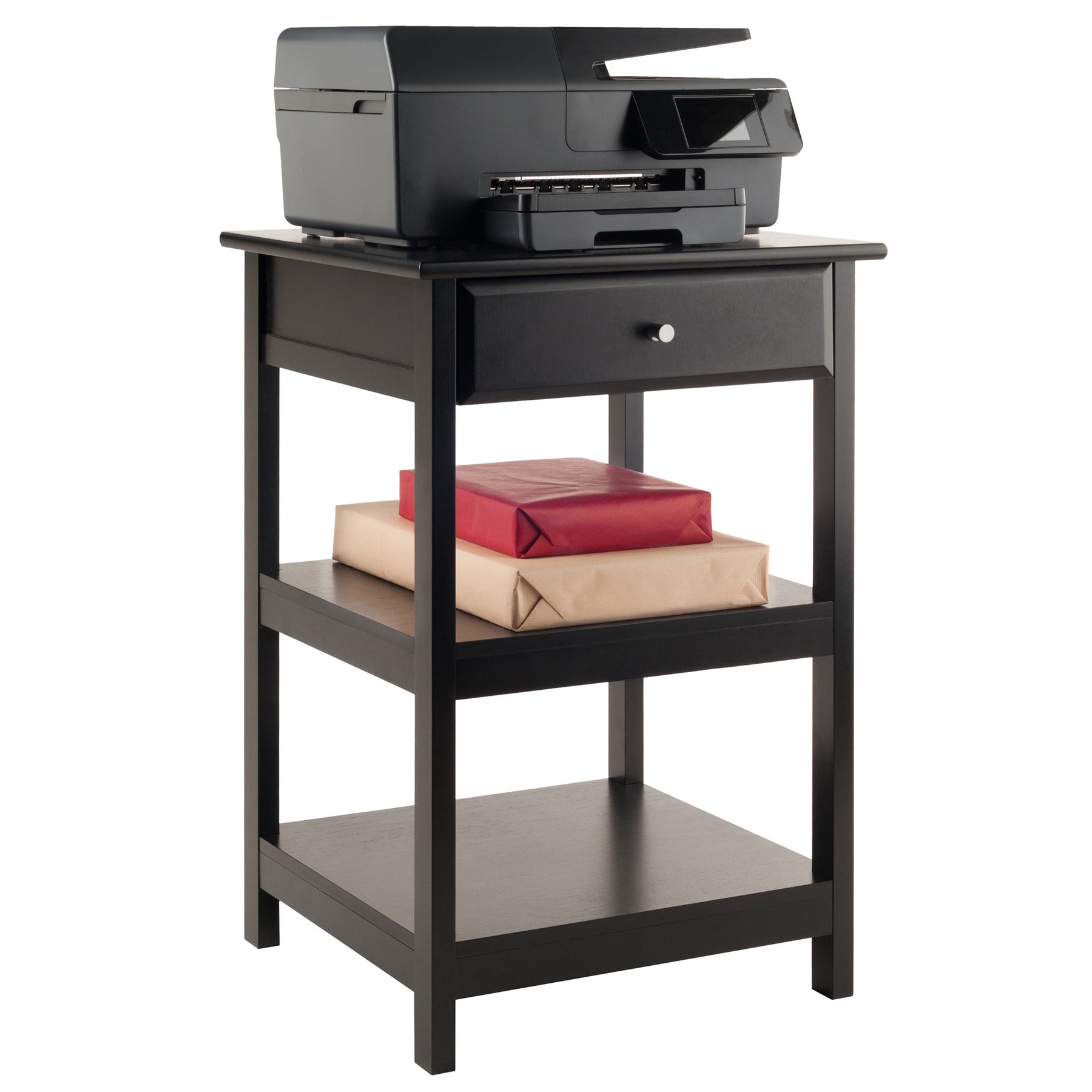 The Delta Printer Table is an ideal addition to any home or professional office. Place a portable printer on the large table top and have plenty of room on the open shelves for reams of paper, file boxes, and more. A printer or fax machine can also go on one of the open shelves, leaving the table top for a lamp or phone. A drawer provides additional storage for smaller office supplies. Designed to complement the Delta Writing Desk, the printer table works great as a stand alone piece. Finished in a rich Black. Printer Table overall size is 20.8"W x 20.2"D x 30.7"H. Made of composite wood in a Black finish.