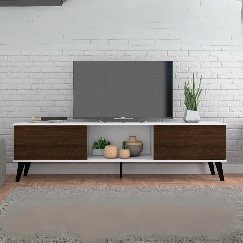 Doyers 70.87 Mid-Century Modern TV Stand in White and Nut Brown