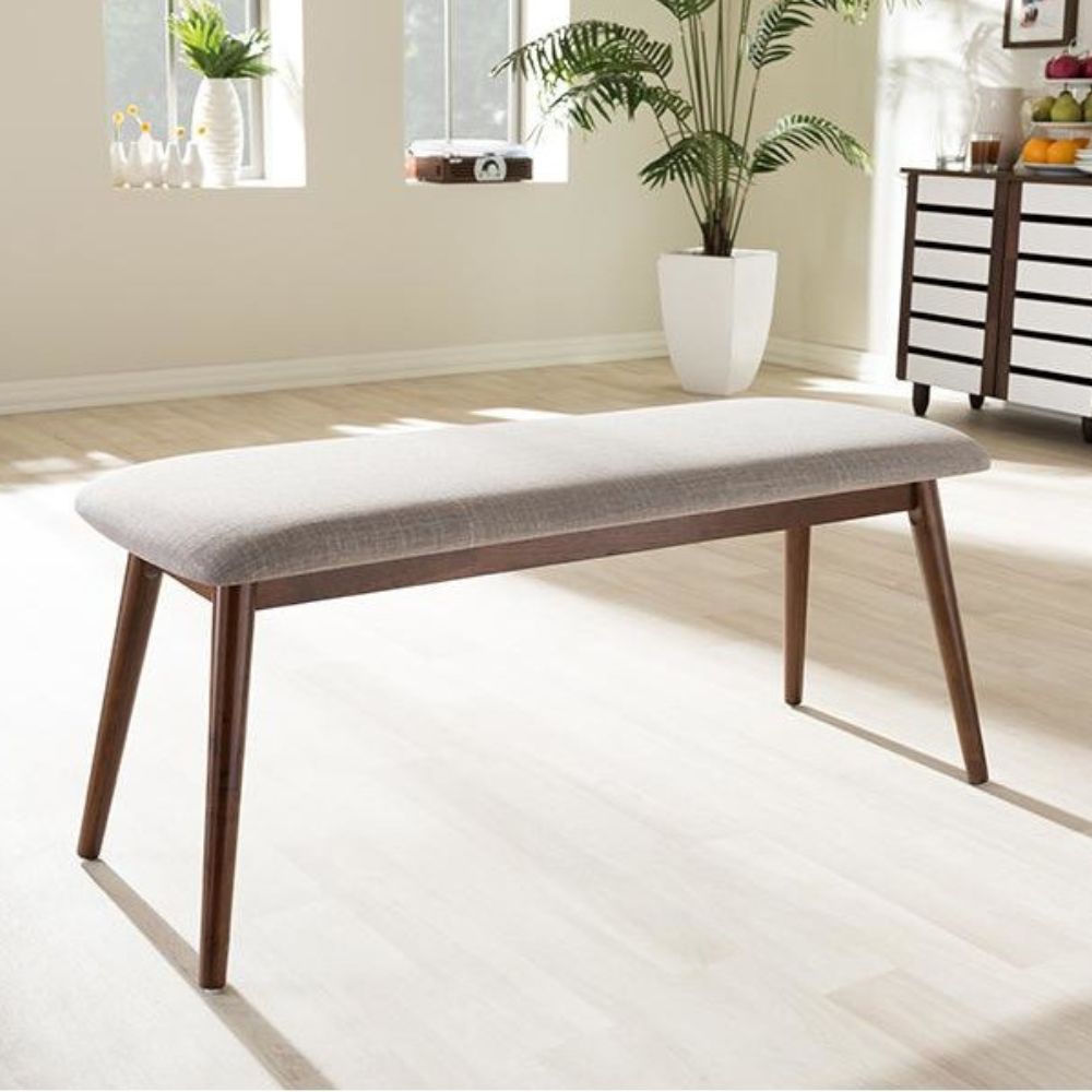Flora Light Grey Fabric and "Oak" Medium Brown Finishing Wood Dining Bench
