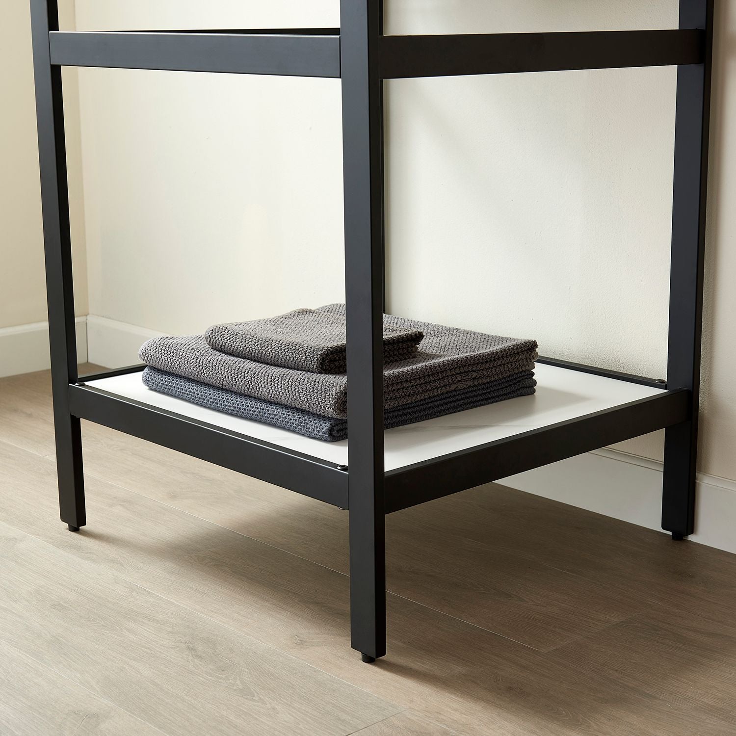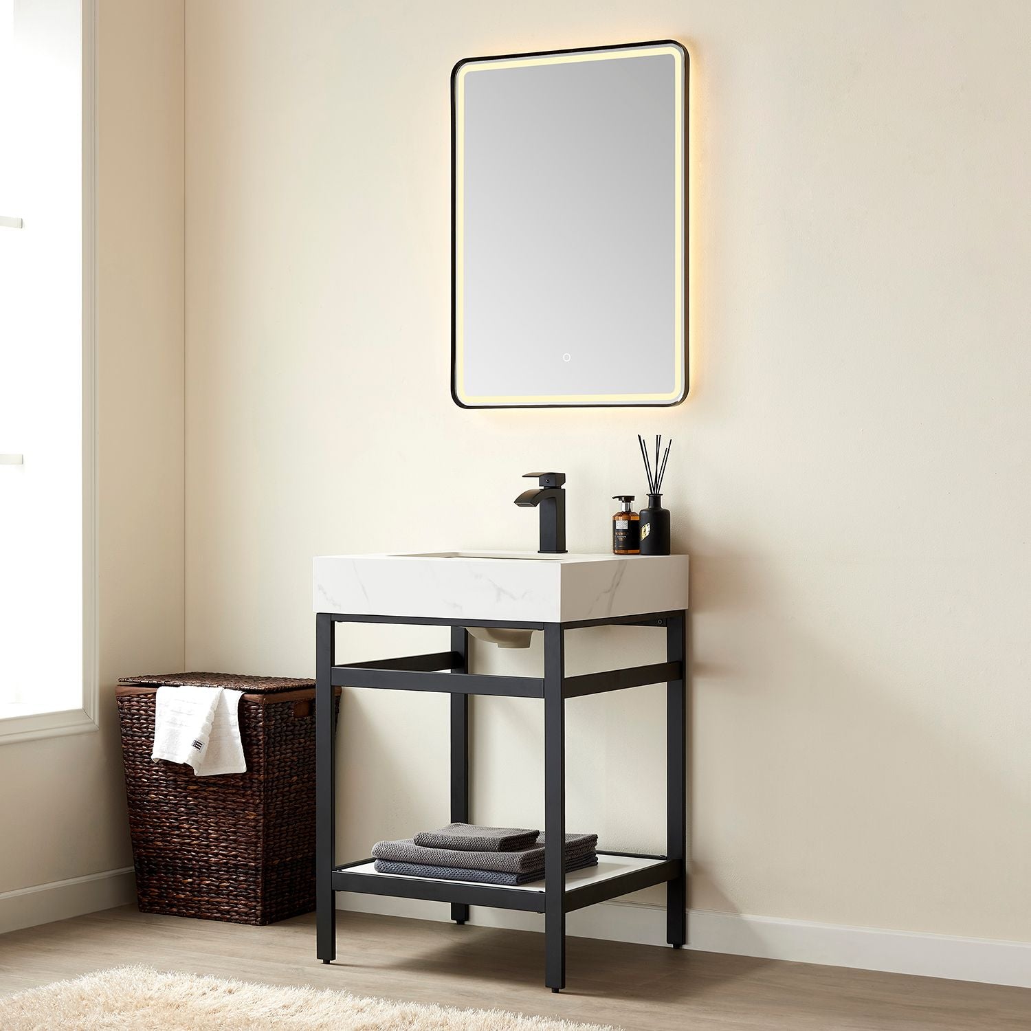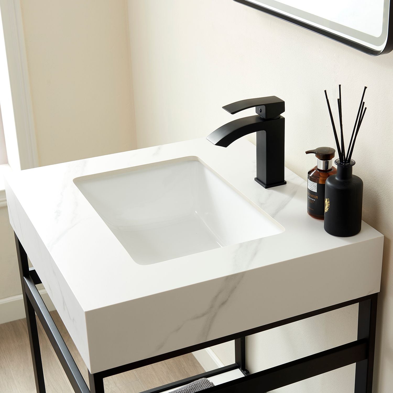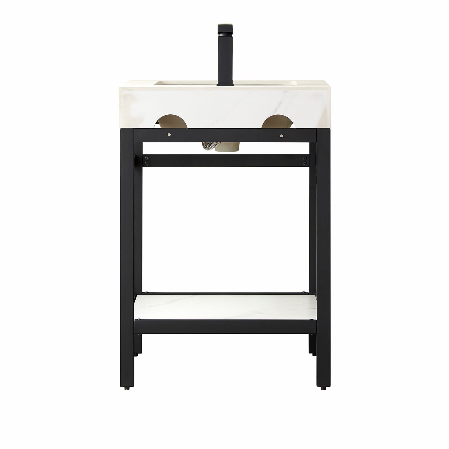 Funes 24" Single Sink Bath Vanity in Matt Black Metal Support with White Sintered Stone Top and Mirror
