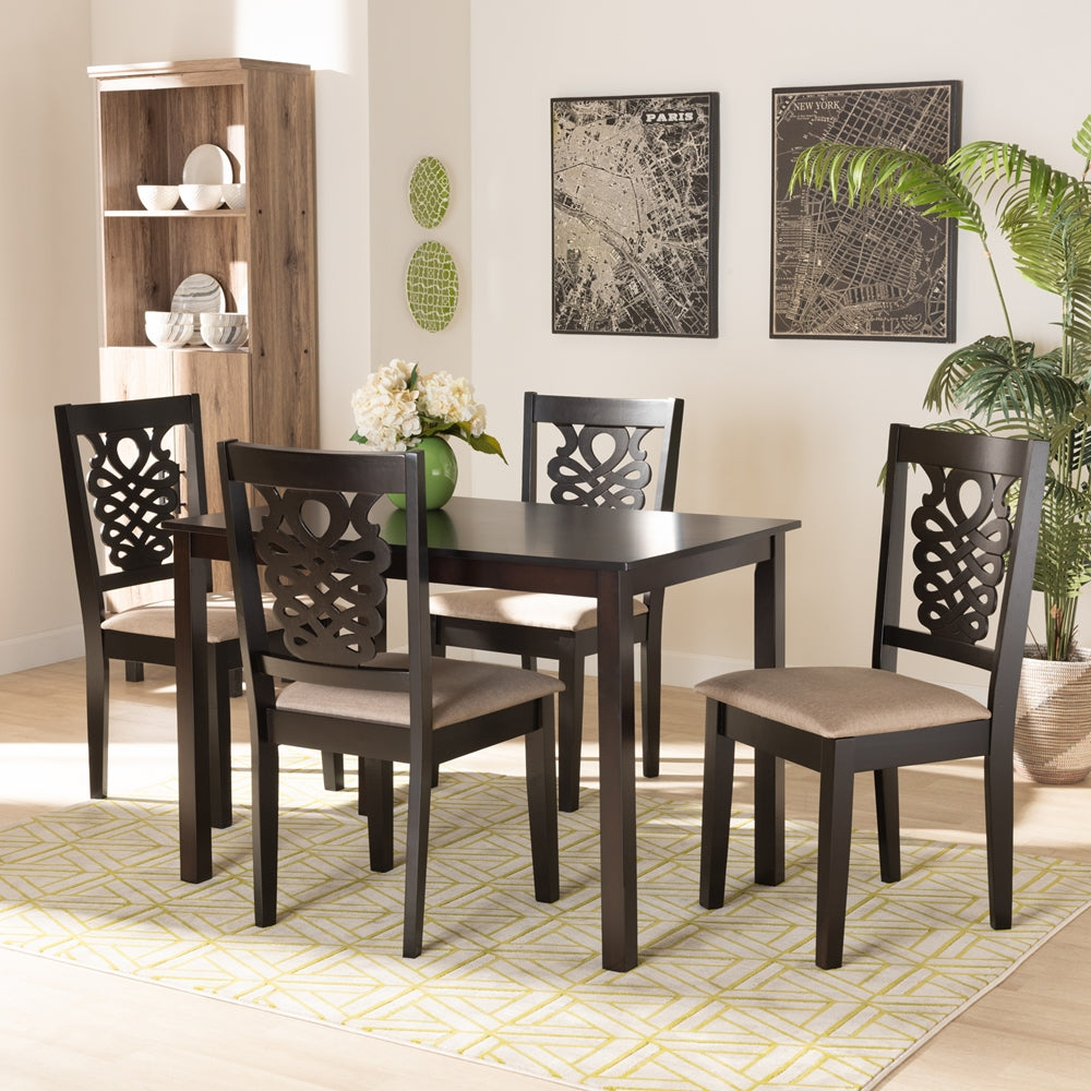 Gervais Modern and Contemporary Sand Fabric Upholstered and Dark Brown Finished Wood 5-Piece Dining Set