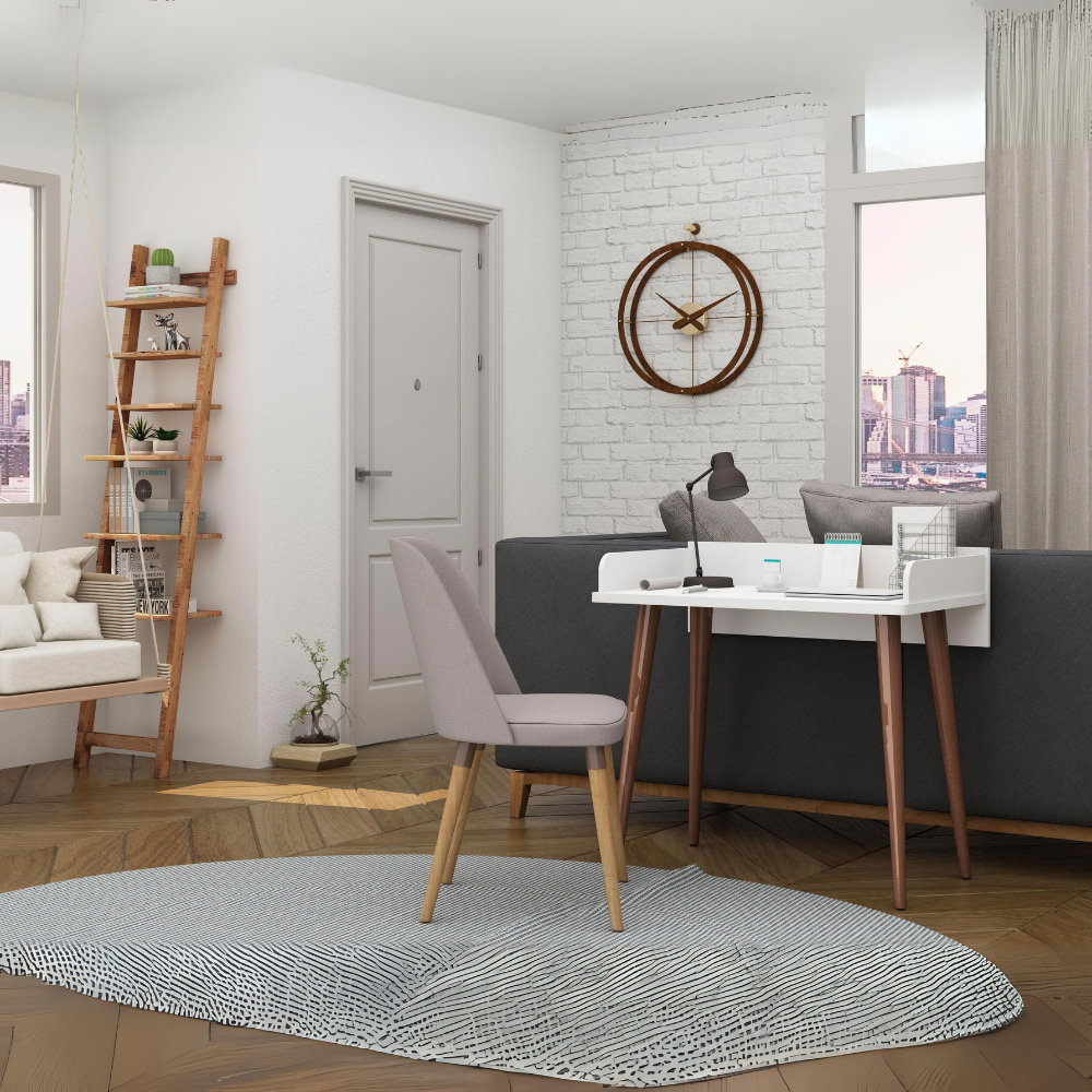 Create the perfect home office and get your work completed in style, with the Hampton 3-piece home office set that provides all your key office pieces to instantly transform any area into a professional and sophisticated workspace. With a nod to mid-century modern design with its splayed legs and clean finish, the desk is a worktop wide enough for any electronics, while an open bookshelf provides ample space for important files, decorative accents, books, or framed photos. Unique open storage cubbies hang above to offer easy access to folders, books, and can display mini vases, fresh plants, and more.