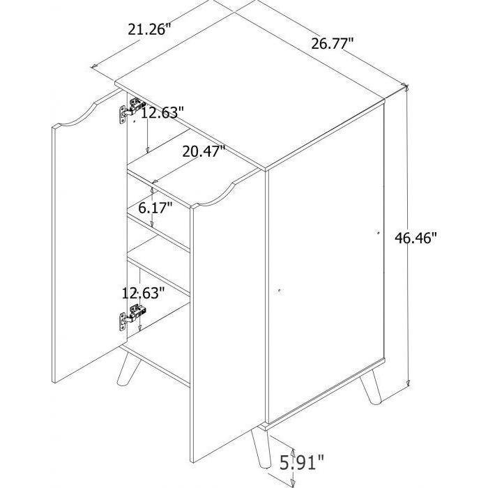 - Upon Assembly, Measures: 26.77 in. Length, 46.46 in. Height, 21.26 in. Depth.