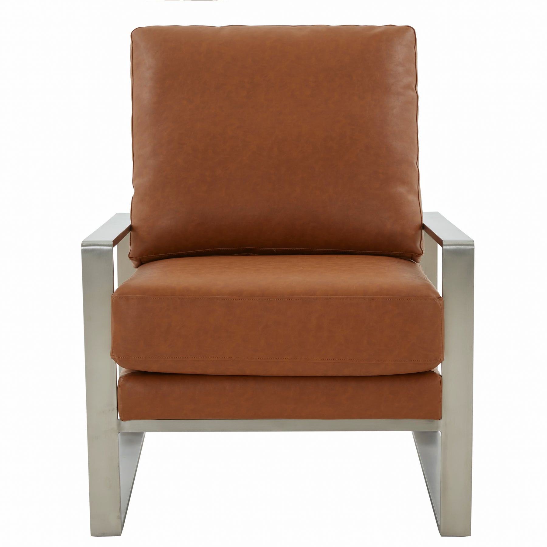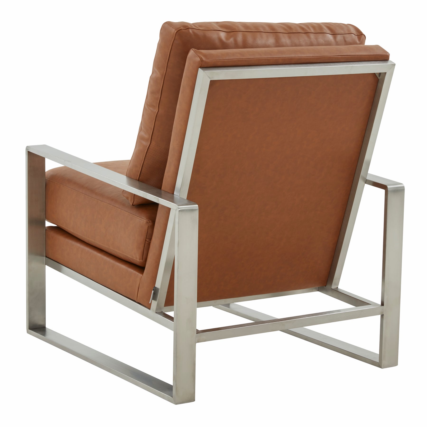 Jefferson Leather Modern Design Accent Armchair With Elegant Silver Frame