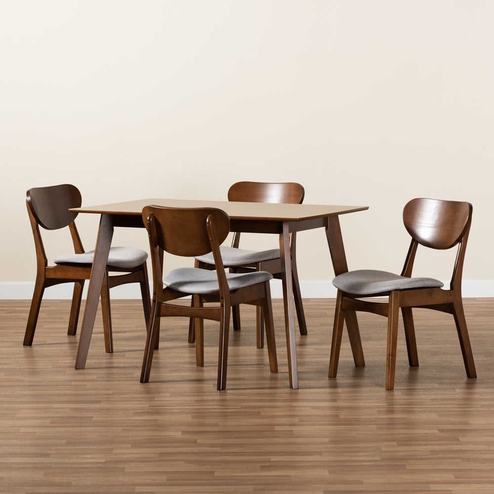 Katya Mid-Century Modern Grey Fabric Upholstered and Walnut Brown Finished Wood 5-Piece Dining Set