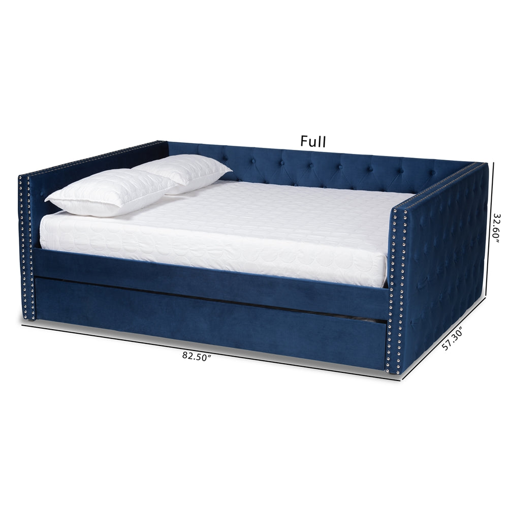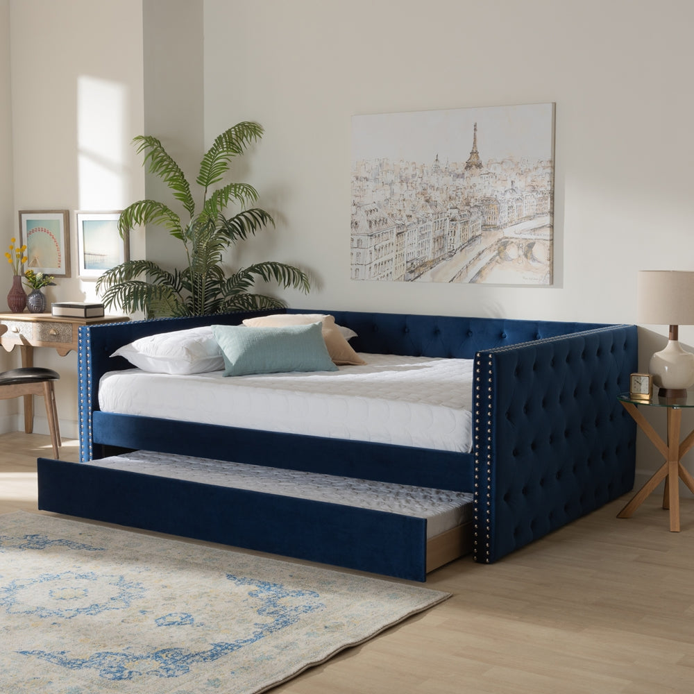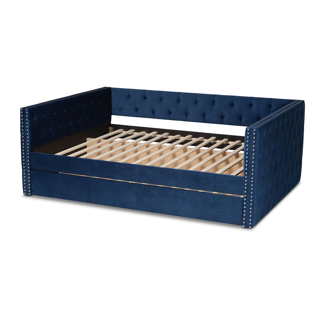 Larkin Modern and Contemporary Navy Blue Velvet Fabric Upholstered Full Size Daybed with Trundle