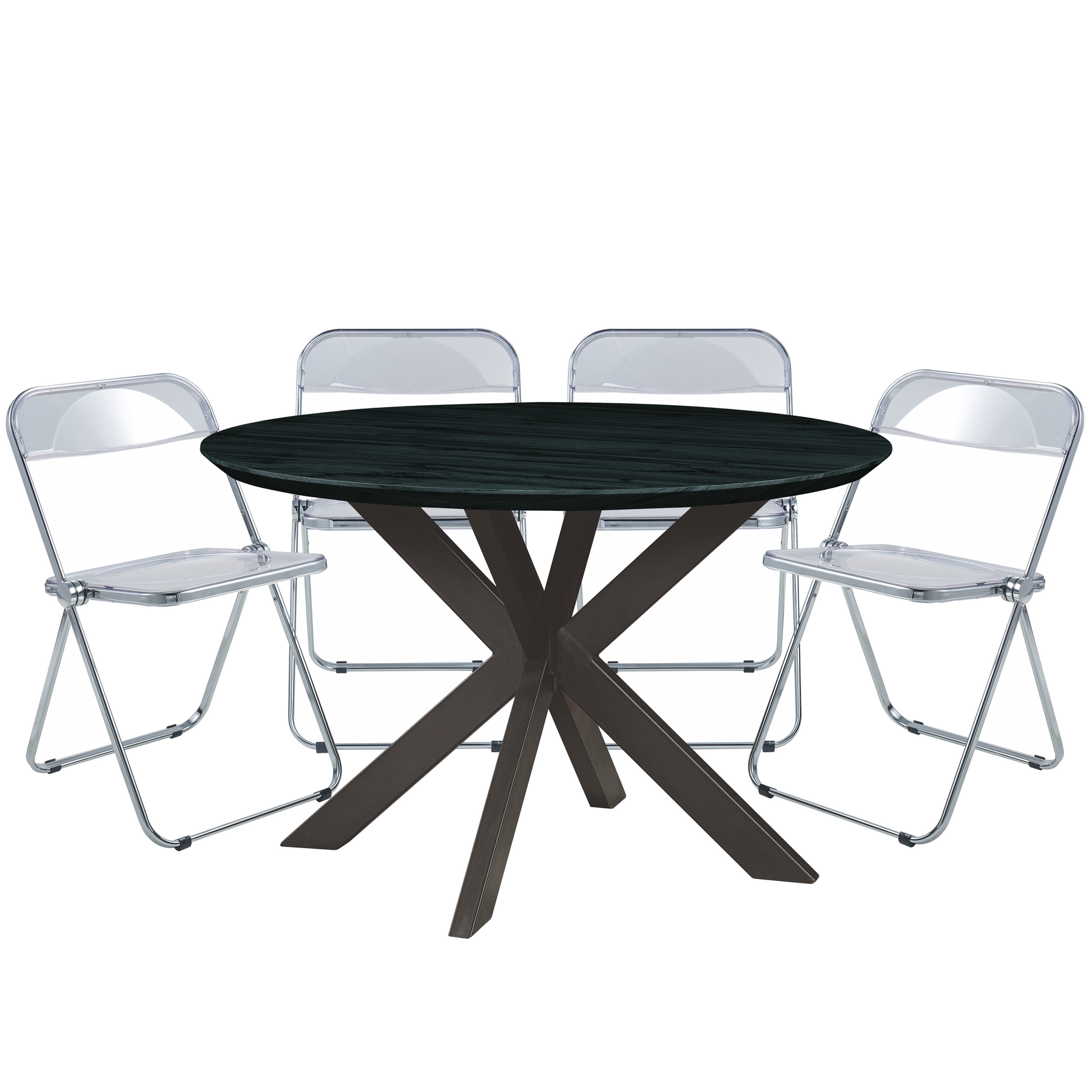 Lawrence 5-Piece Acrylic Folding Dining Chair and Round Dining Table with Geometic Base Set in Clear