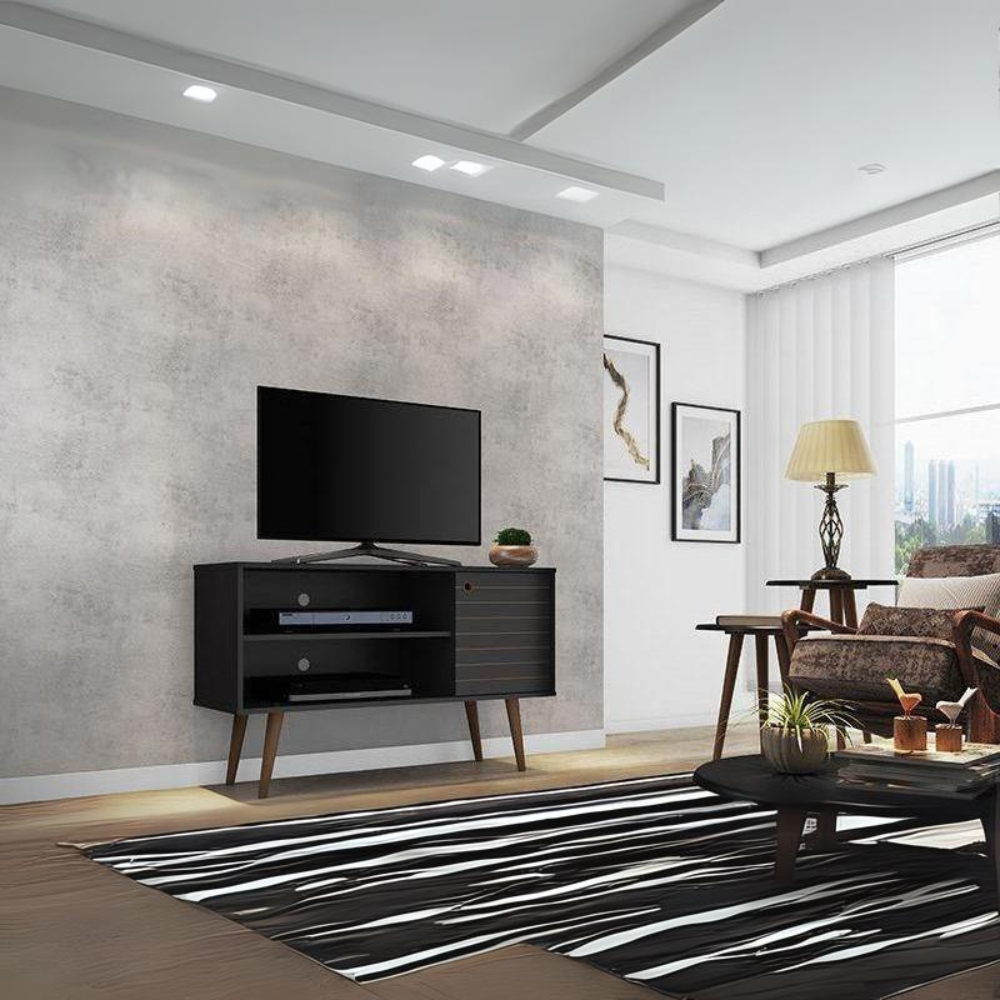 Liberty 42.52" Mid-Century - Modern TV Stand with 2 Shelves and 1 Door in Black