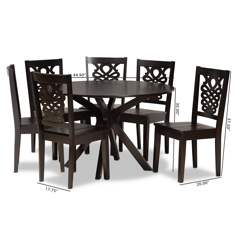 Liese Modern and Contemporary Transitional Dark Brown Finished Wood 7-Piece Dining Set