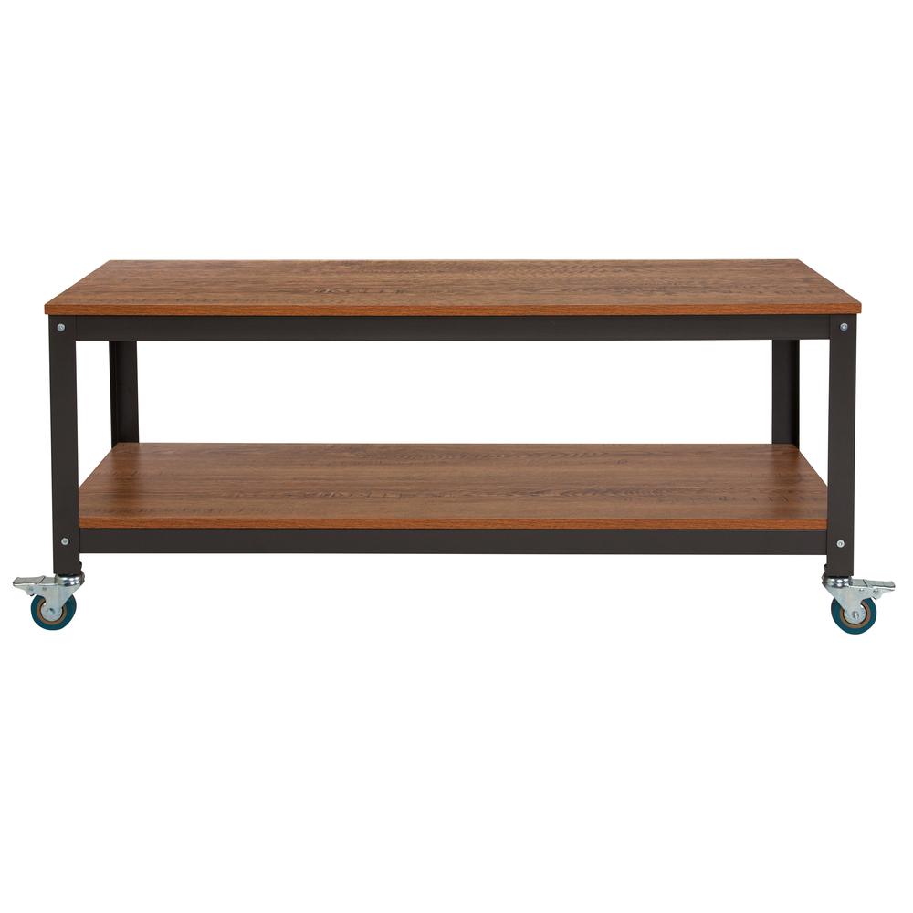 Livingston Collection TV Stand in Brown Oak Wood Grain Finish with Metal Wheels