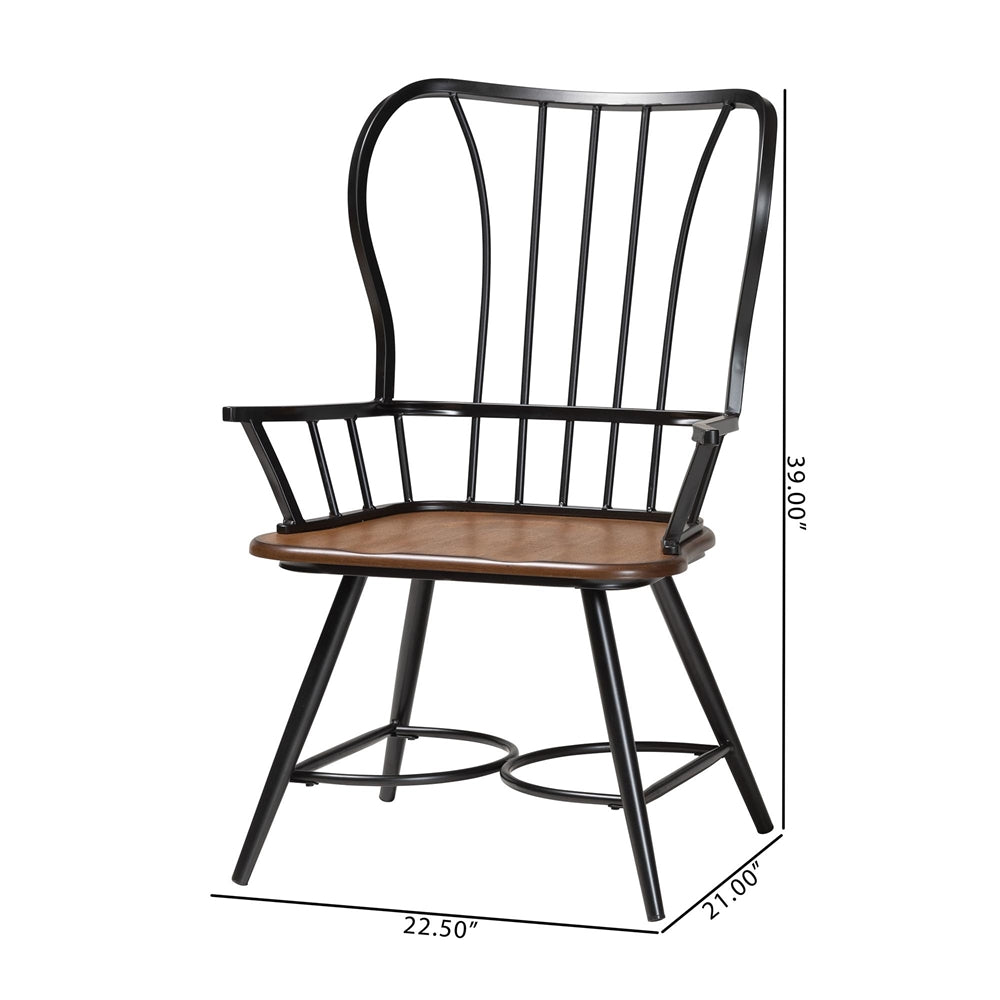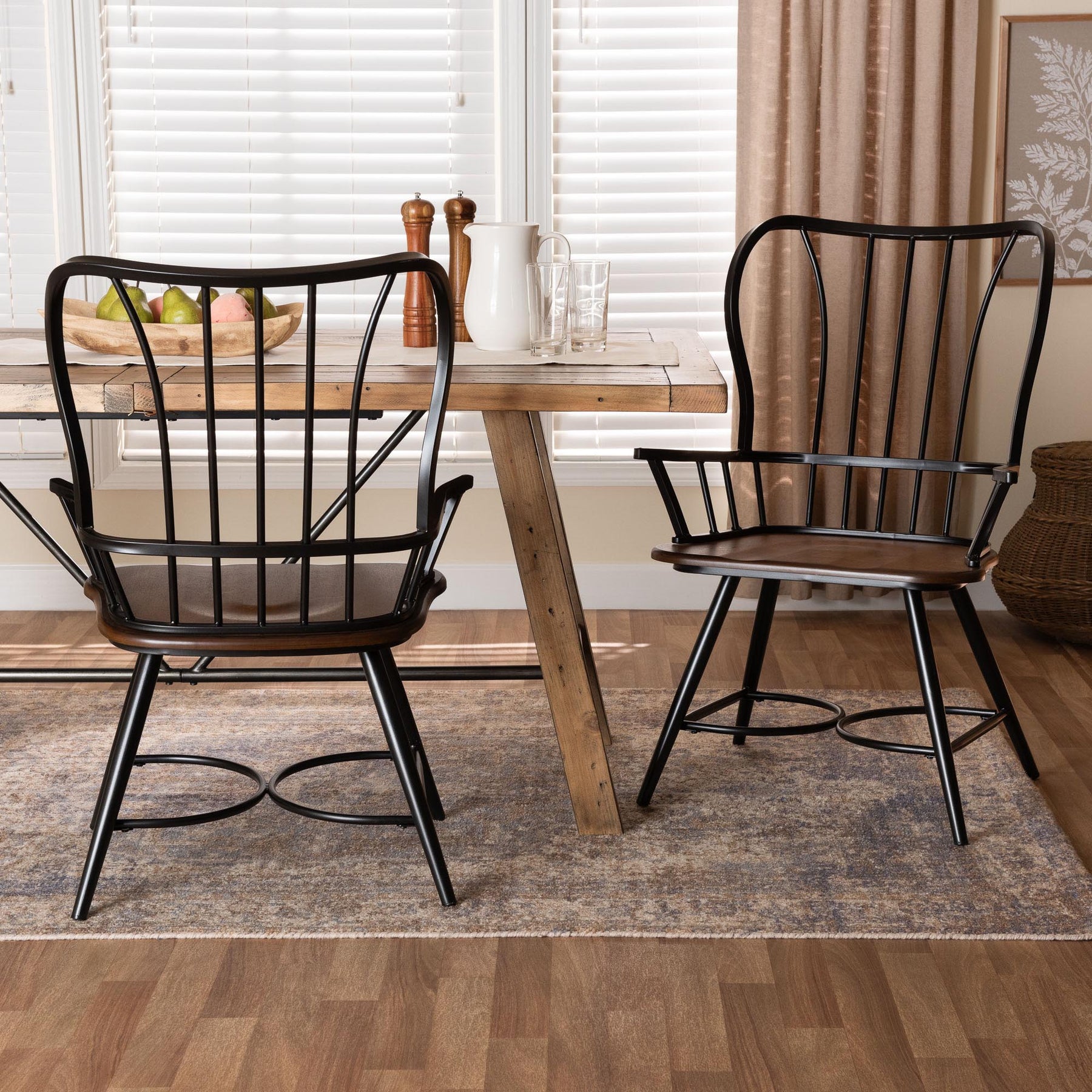 Longford Wood and Black Metal Vintage Industrial Dining Arm Chair (Set of 2)
