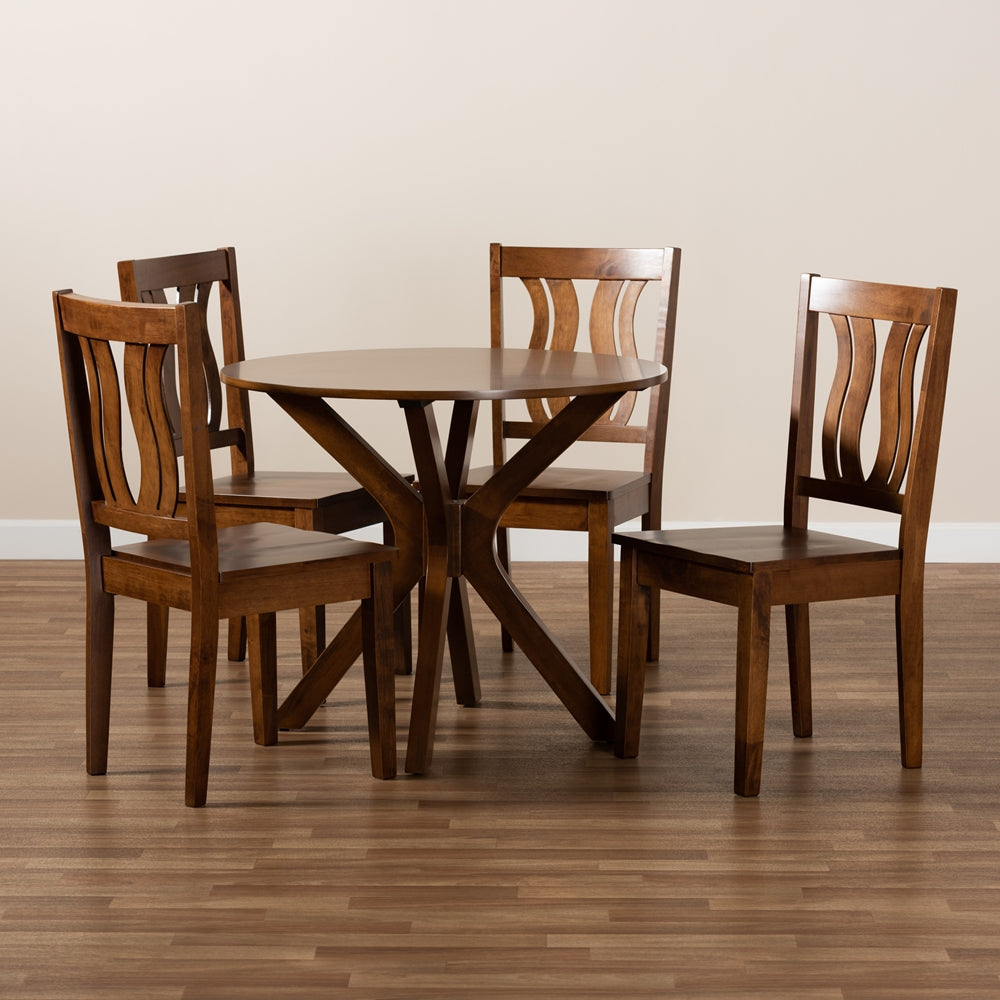 Mare Modern and Contemporary Transitional Walnut Brown Finished Wood 5-Piece Dining Set