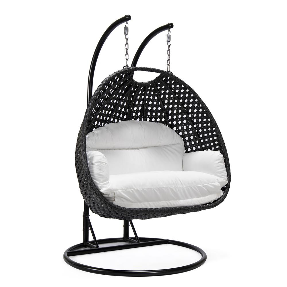 This Fun Egg-Shaped Porch Swing Chair Which Fits 2 People Comfortably Was Built To Last In The Outdoors With Its Strong & Durable Iron Frame It Will Be Perfect For All Weathers. Sit In Luxurious Comfort While Surrounded By The Peace And Beauty Of Your Backyard, Or Enjoy A Good Book Indoors With This Comfortable Hanging Chair. This Stylish Hanging Chair Adds An Eye-Catching Design And A Comfortable Place To Stop And Enjoy All Your Beautiful Garden