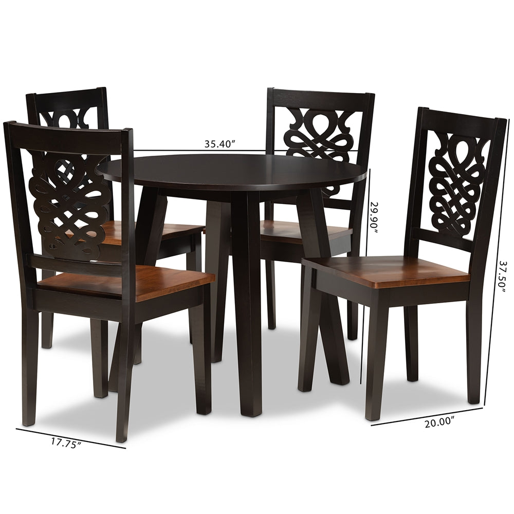 Mina Modern and Contemporary Transitional Two-Tone Dark Brown and Walnut Brown Finished Wood 5-Piece Dining Set