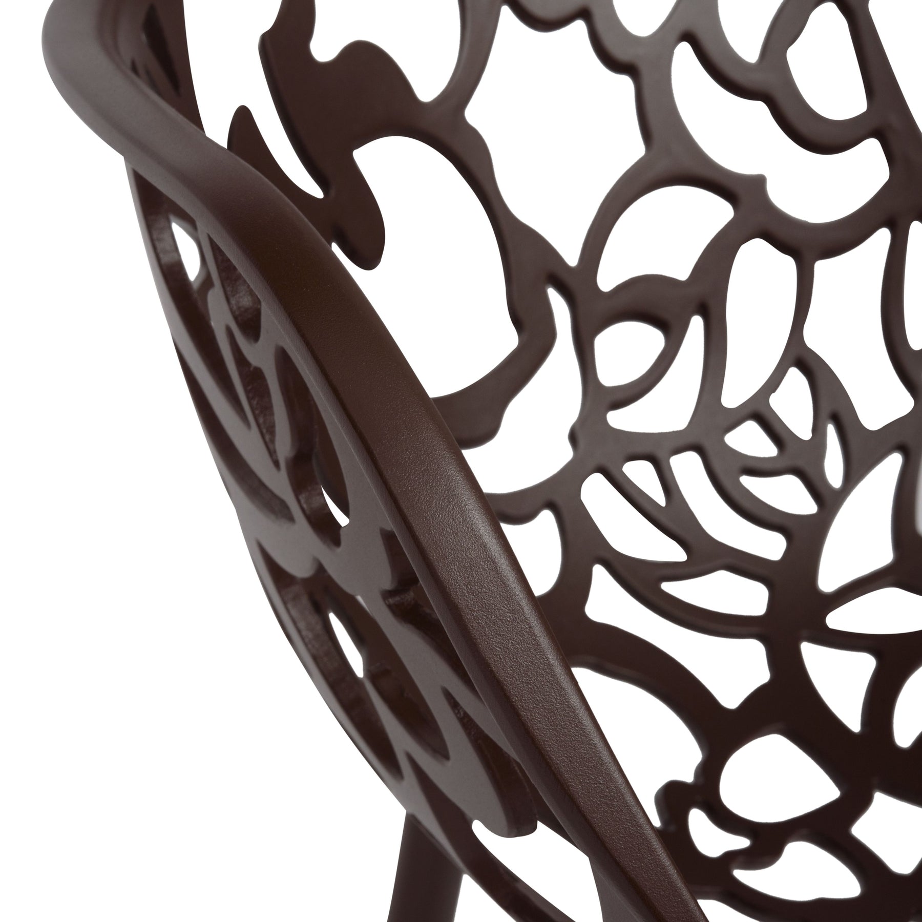 The Attractive Flower Design Of This Chair Is An Asset For The Home Of Any Modern Furniture Lover. The Eye Catching Stylish Design Will Have Your Guests Raving Over Your Decor. This Is The Sort Of Outdoor Accent Chair That Makes A Statement. The Devon Chair Is Constructed Of An Aluminum Frame Three Times Stronger Than Steel With A Painted Finish, Crafted To Stand The Test Of Time. The Unique Cut-Out Design Lends A Modern Touch Of Beauty That Can Work In A Variety Of Spaces. Great For Transforming Any Area In Your Home Or Backyard Into An Elegant Dining Area.