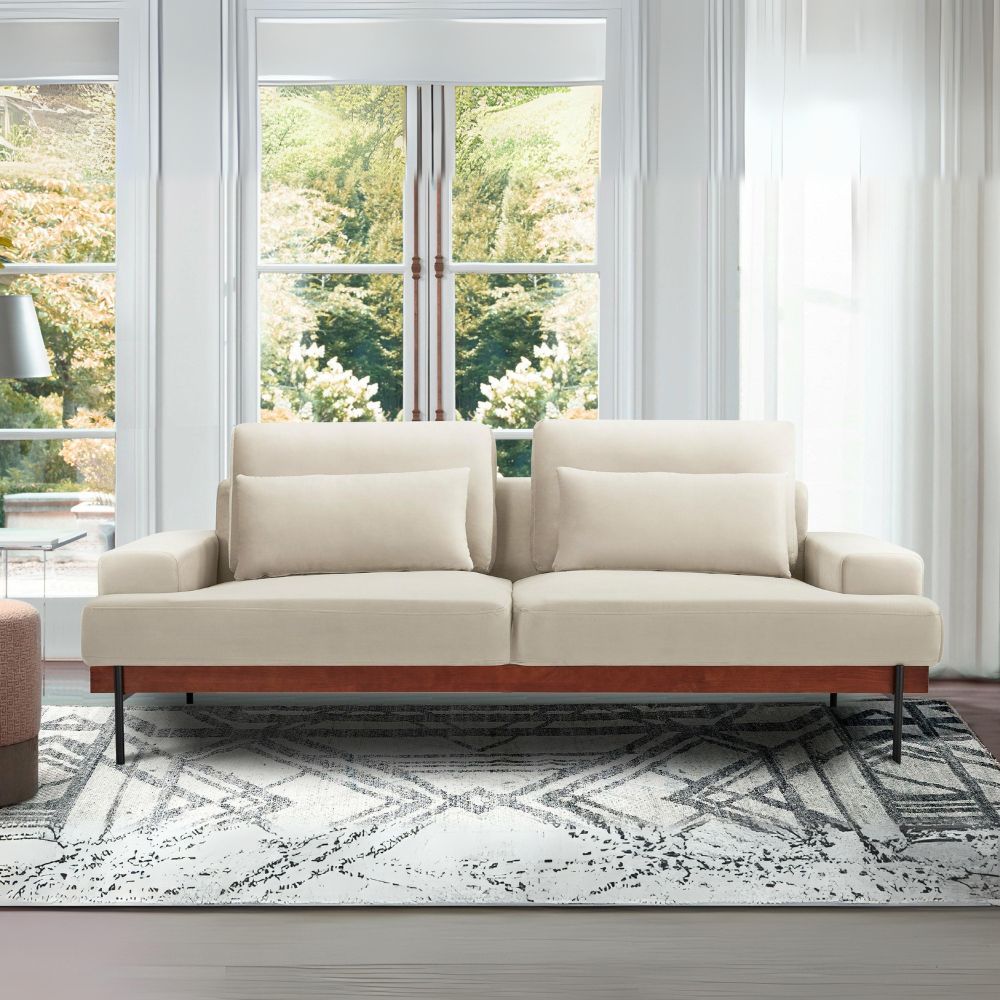 Monet 86" Mid-Century Modern Beige Velvet Sofa