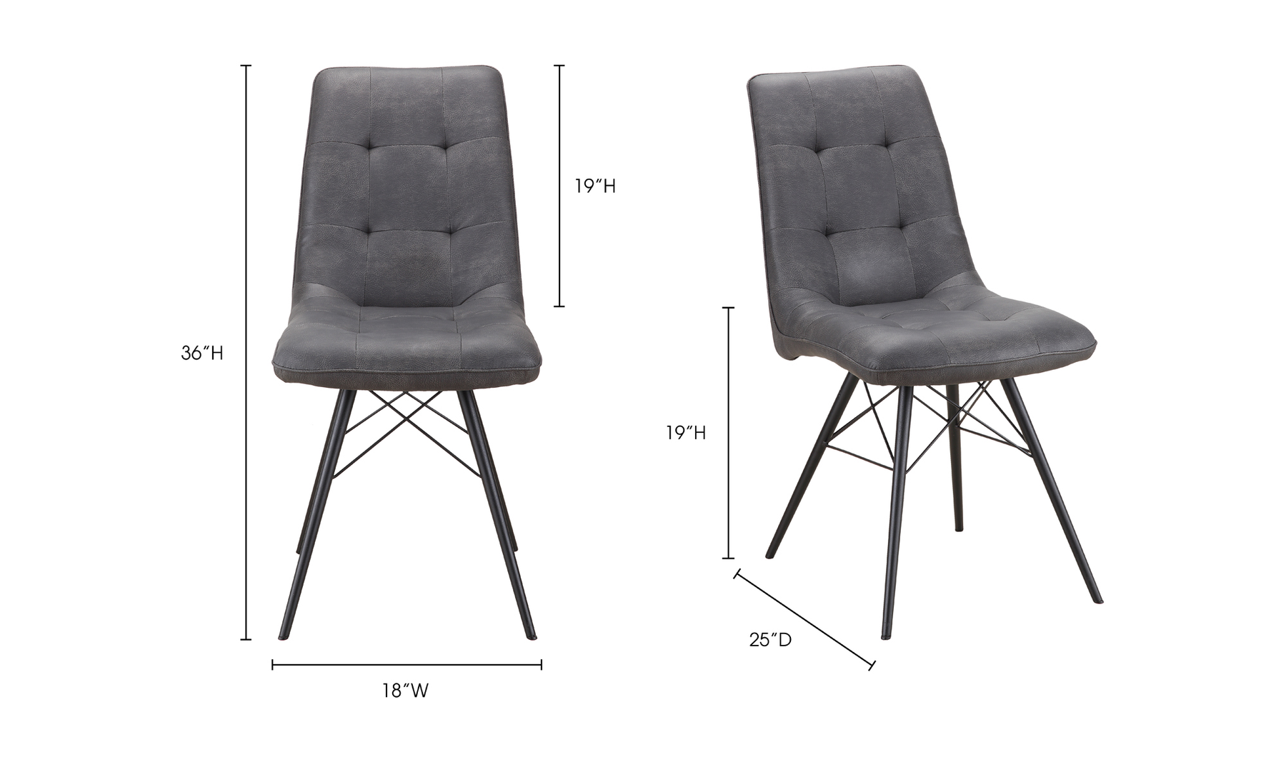 The Morrison is a sleek dining chair design, with a comfortable padded seat for long dinners with family and friends, easy-care PU upholstery, and mid-century inspired legs.The padded seat provides superior comfort.Metal legs for long lasting support. Low maintenance polyurethane seat is easy to keep clean.Clean vinyl fabric on a monthly basis to remove any build up of dust, dirt, food, or oils that could damage the fabric over time.