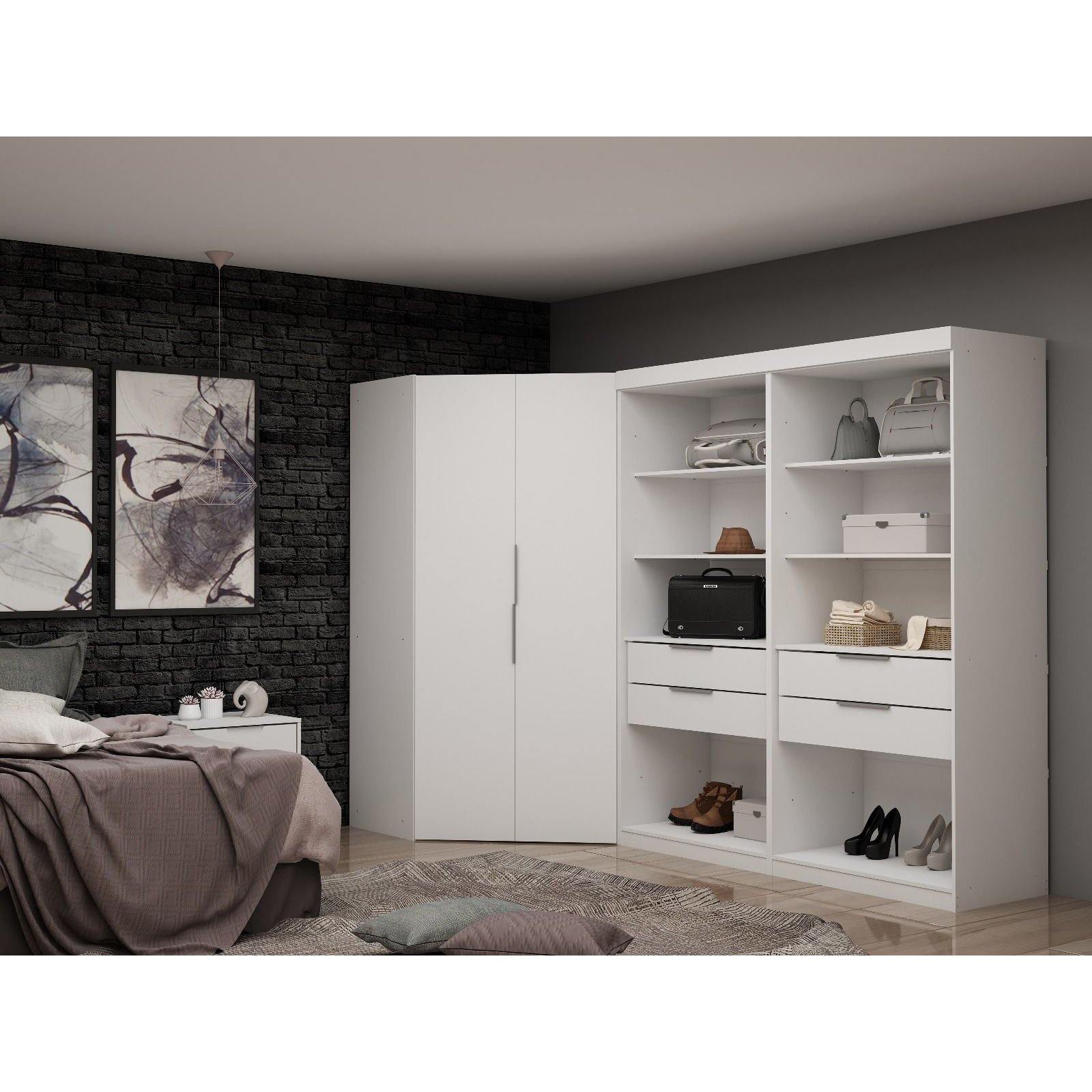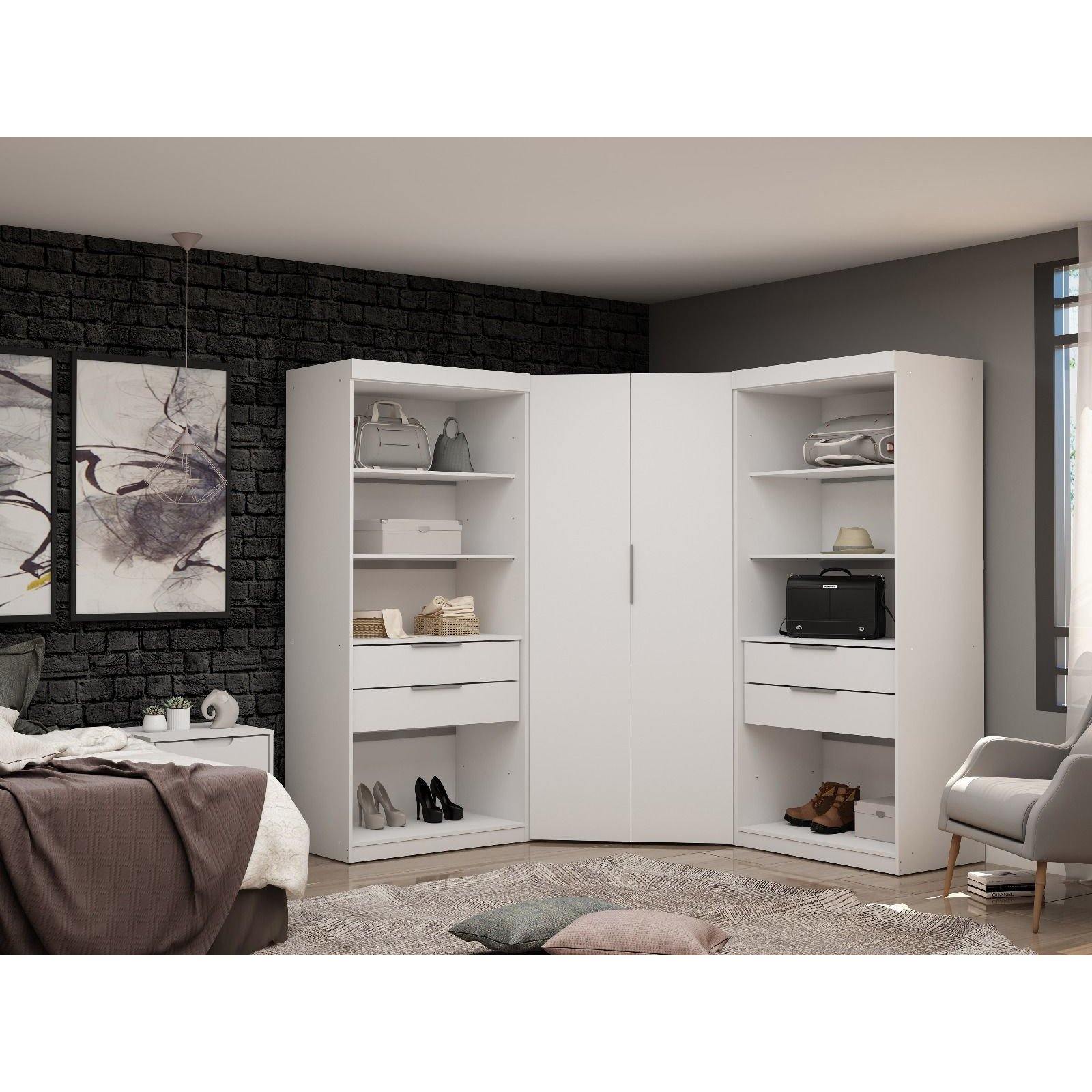 Mulberry 2.0 Semi Open 3 Sectional Modern Wardrobe Corner Closet with 4 Drawers - Set of 3 in White