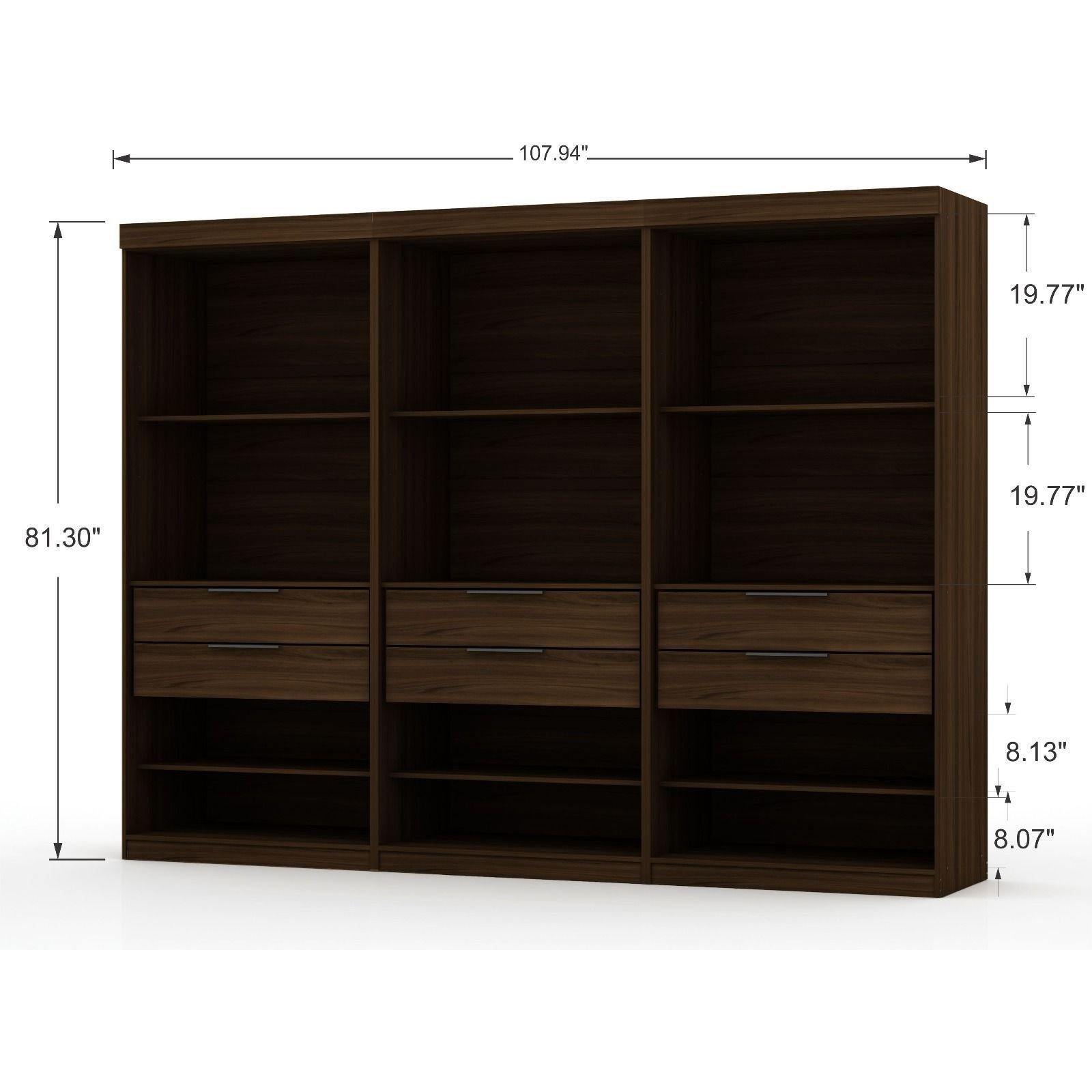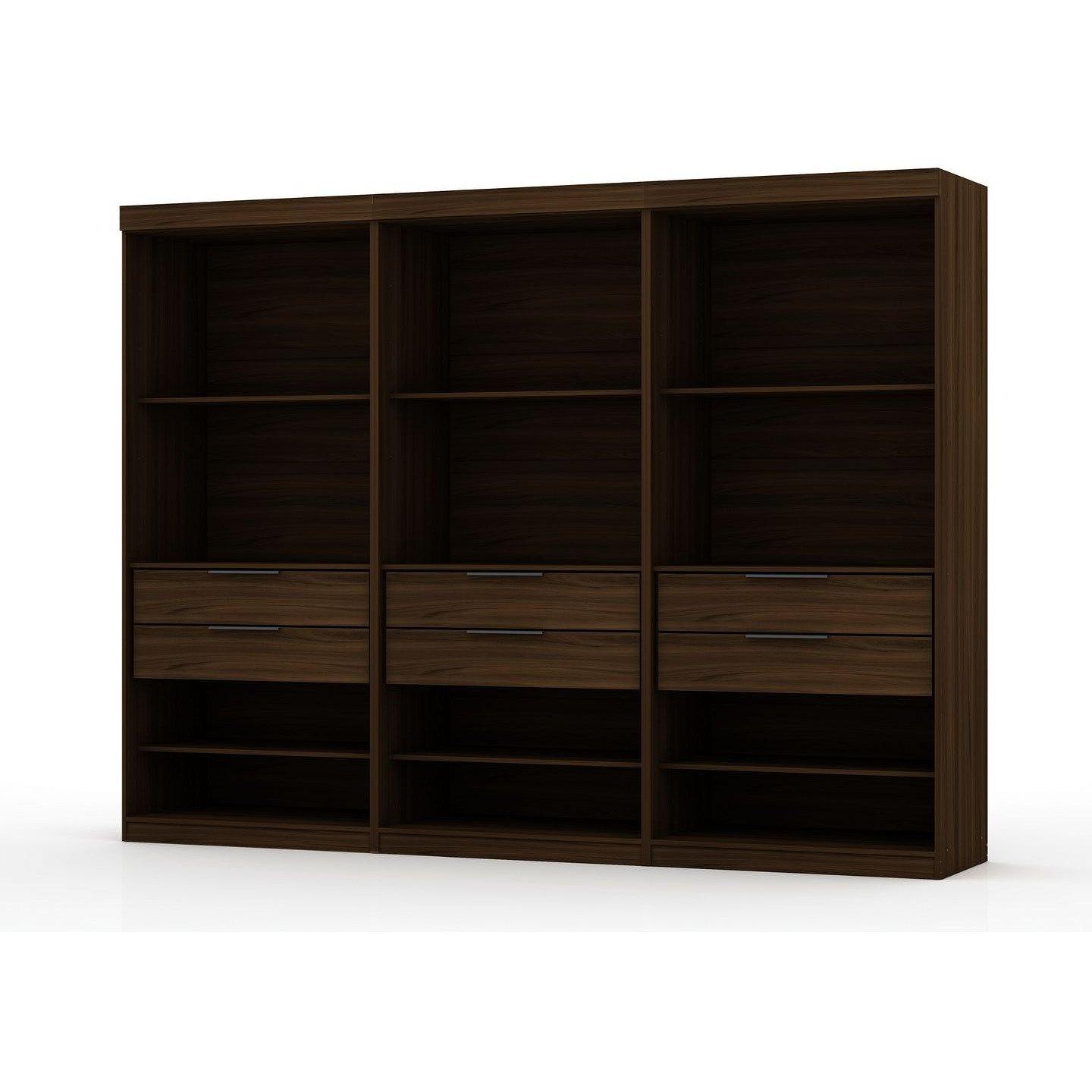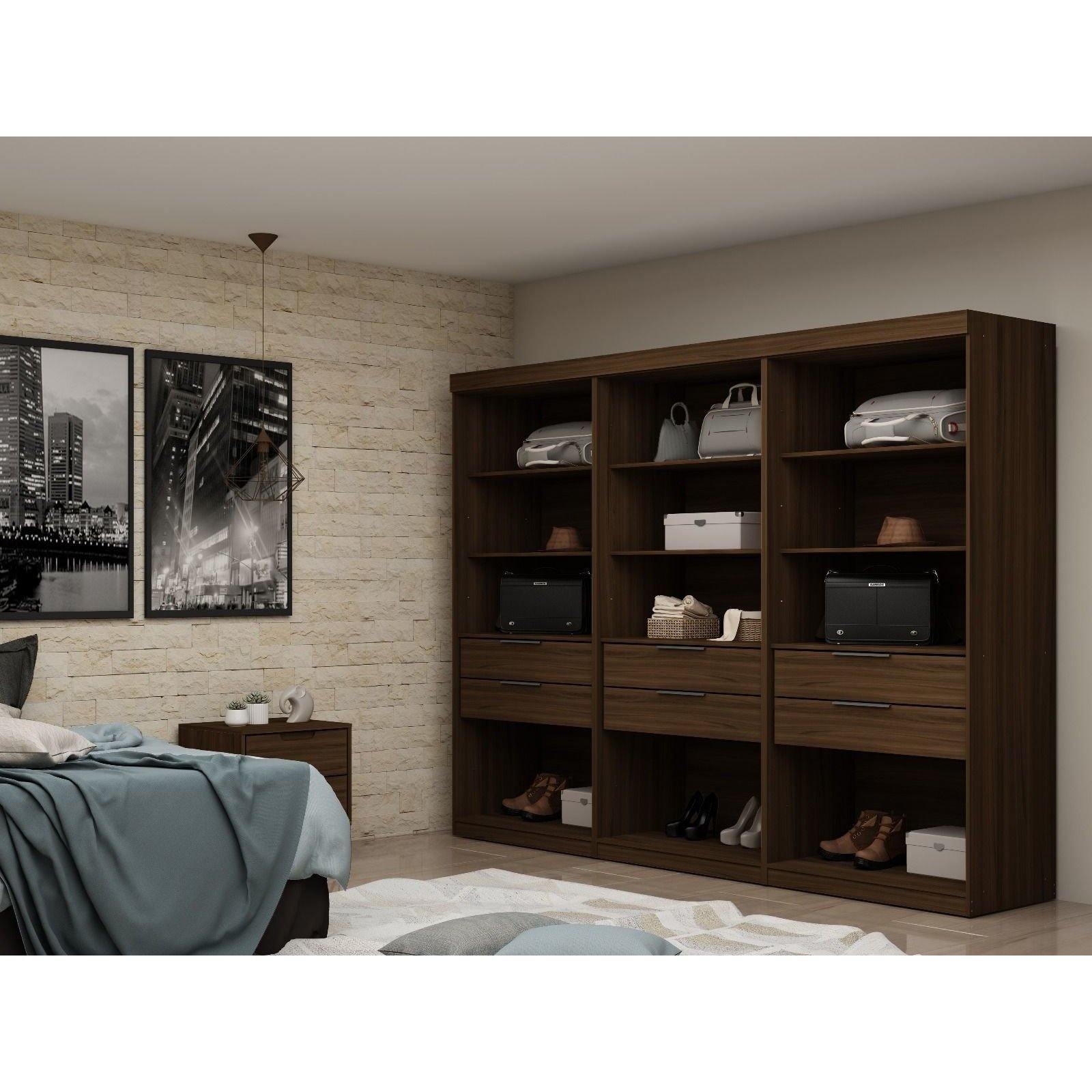Mulberry Open 3 Sectional Modem Wardrobe Closet with 6 Drawers - Set of 3 in Brown