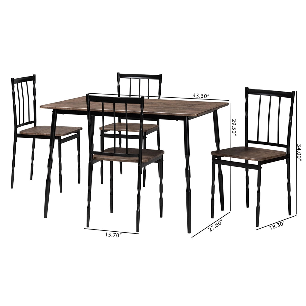 Nevan Modern Industrial Brown Wood And Metal 5-piece Dining Set