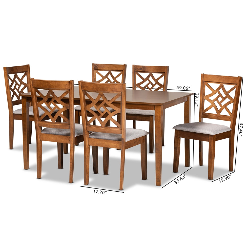 Nicolette Modern and Contemporary Grey Fabric Upholstered and Walnut Brown Finished Wood 7-Piece Dining Set