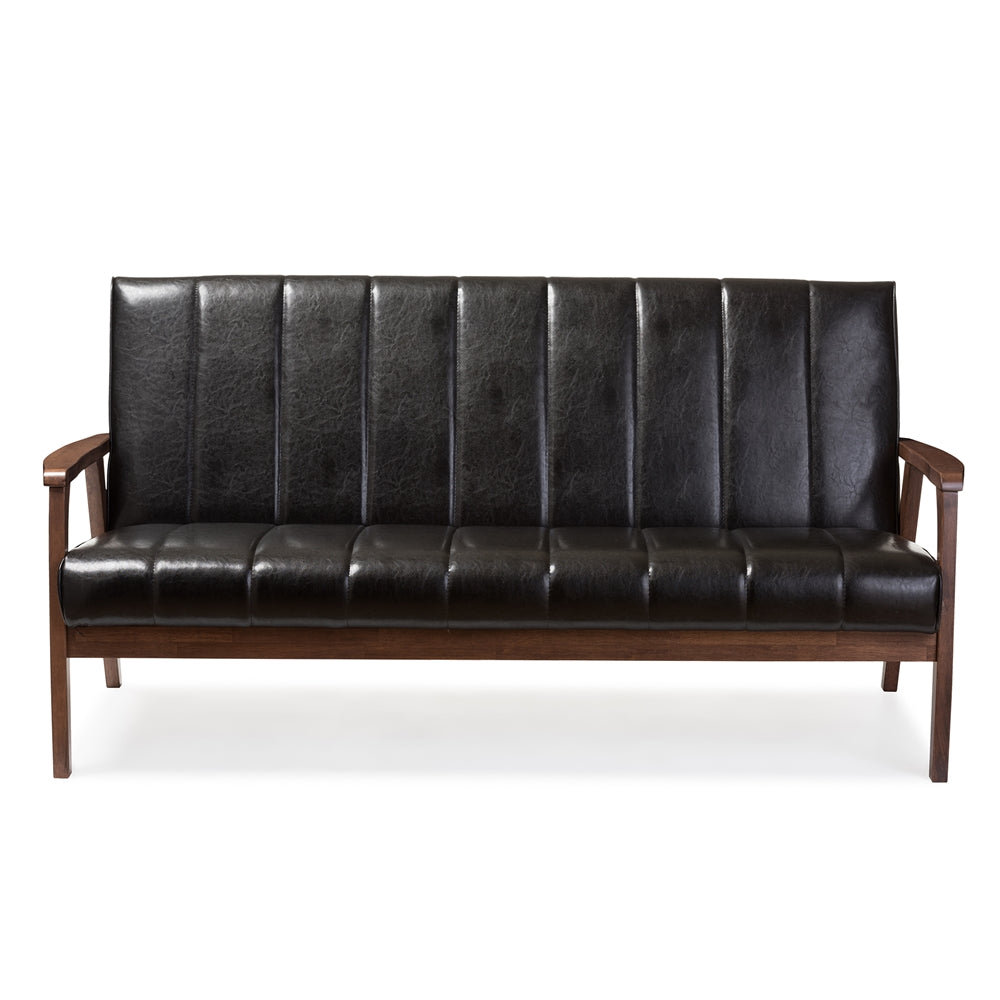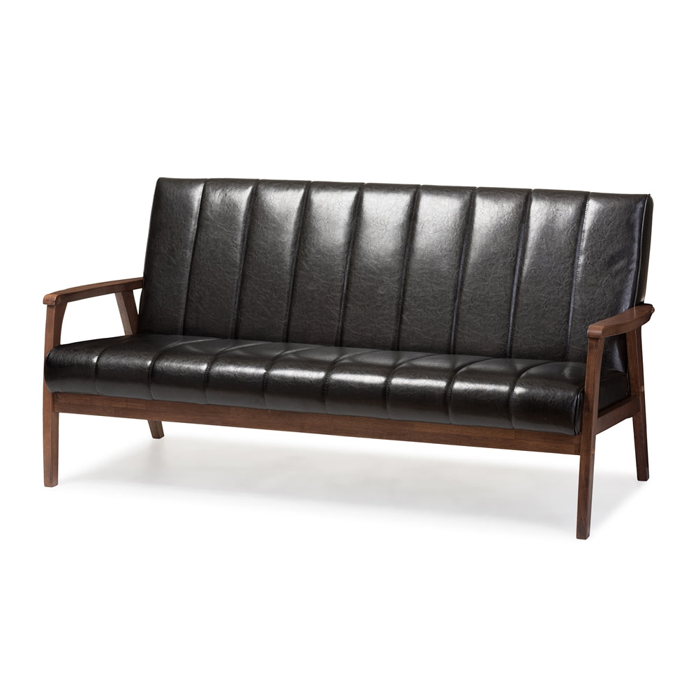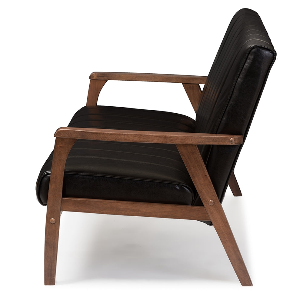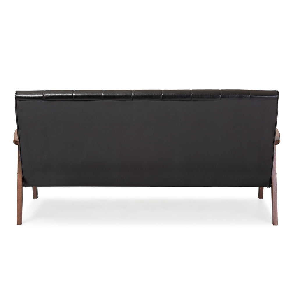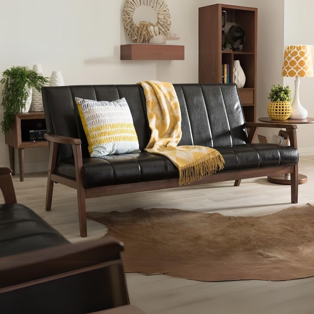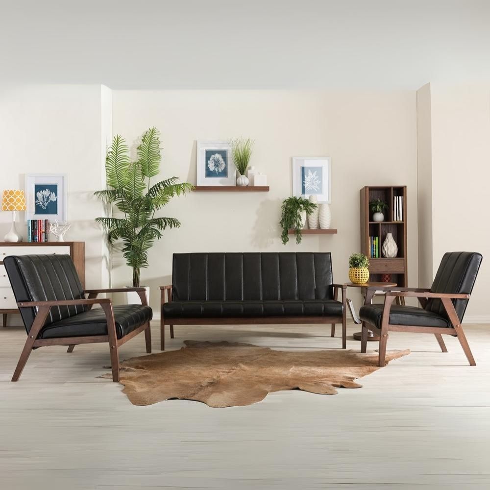 Nikko Mid-century Modern Scandinavian Style Black Faux Leather 3 Pieces Living Room Sets