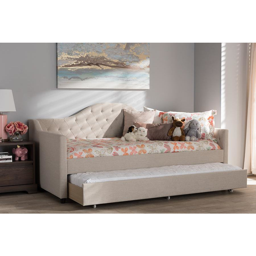 Perry Modern and Contemporary Light Beige Fabric Daybed with Trundle