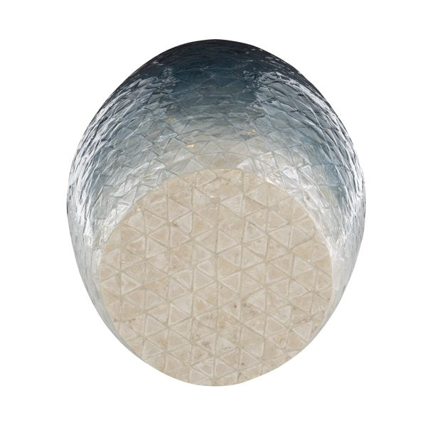 This modern drum table will add a splash of glamour to any living room or office space. Featuring a capiz shell finish in a stunning white to blue ombre, this unique piece will serve as a beautiful accent in nearly any decor. This round drum table is perfect for displaying small decor items such as candles, vases, and picture frames.
