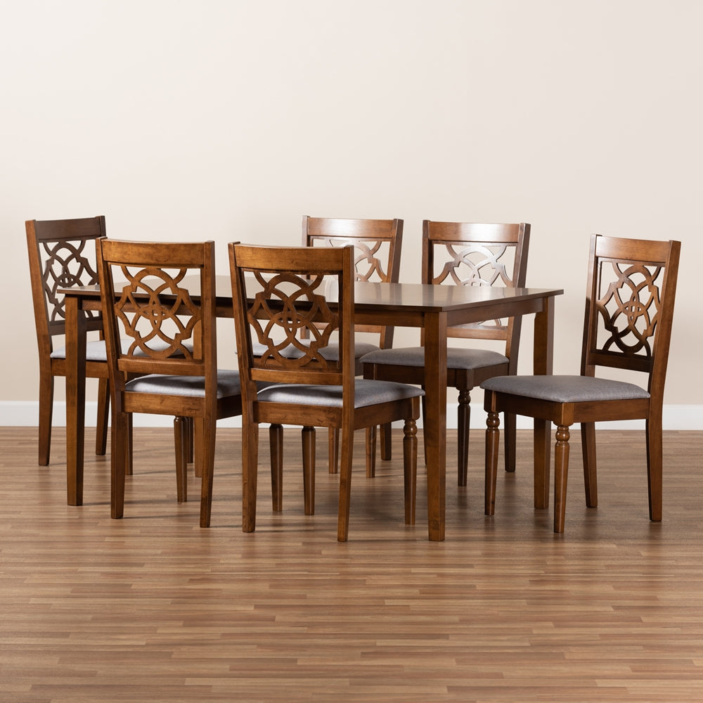 Renaud Modern and Contemporary Grey Fabric Upholstered and Walnut Brown Finished Wood 7-Piece Dining Set
