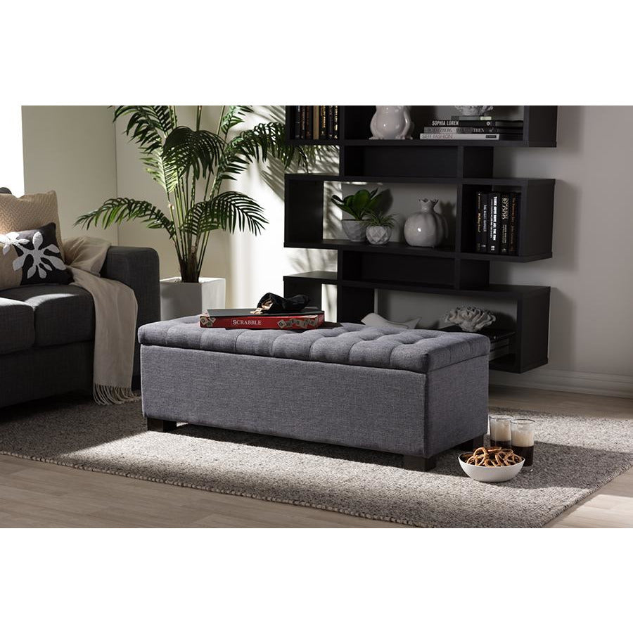 Roanoke Modern Dark Grey Fabric Upholstered Grid-Tufting Storage Ottoman Bench