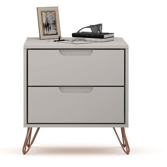 Rockefeller 2.0 Mid-Century- Modern Nightstand with 2-Drawer in White