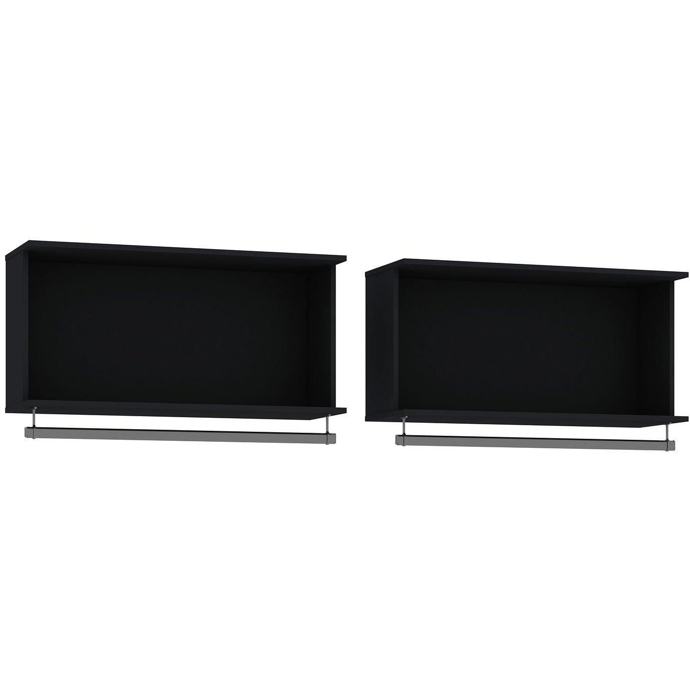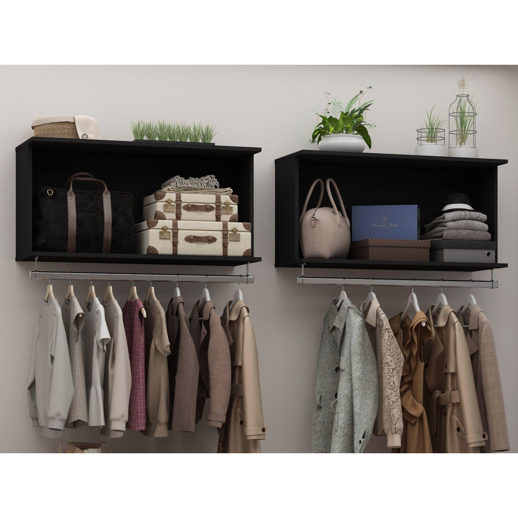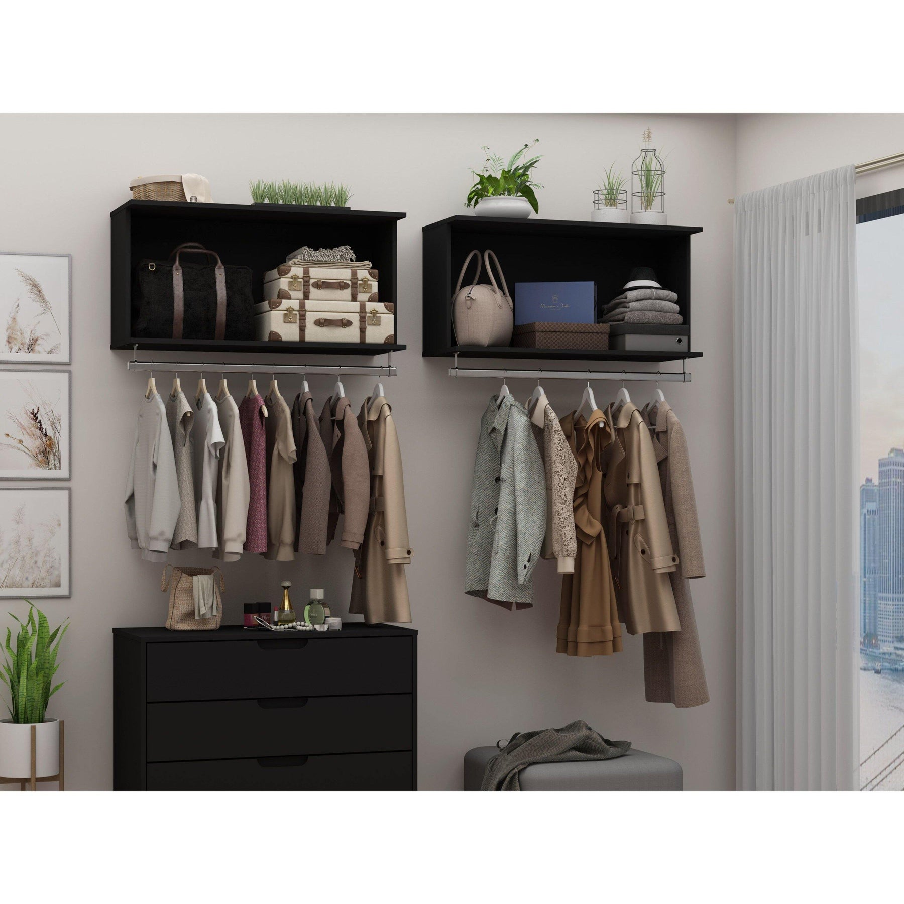 Rockefeller 2-Piece 35.24 Open Floating Hanging Closet with Shelf and Hanging Rod in Black