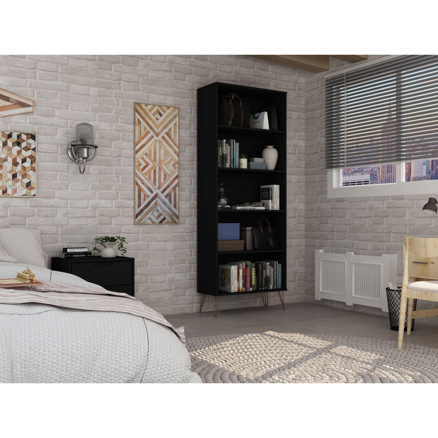 Rockefeller Bookcase 3.0 with 5 Shelves and Metal Legs in Black