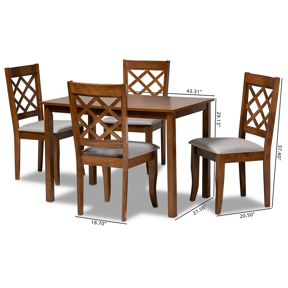 Sari Modern and Contemporary Grey Fabric Upholstered and Walnut Brown Finished Wood 5-Piece Dining Set