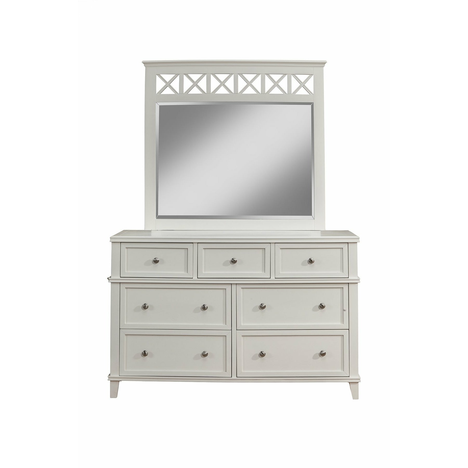Crisp and clean, the Potter collection features traditional bar columns and relaxed open fretwork. The group can be more formal or casual depending on how you prefer to decorate. The Mahogany wood solids and veneers, pristine White finish, and brushed nickel hardware on all the optional case pieces go together beautifully and create a pleasing and comfortable environment. Dresser features 2 drawers for storage. Coordinate with other optional items from the Potter collection to complete your room setting.