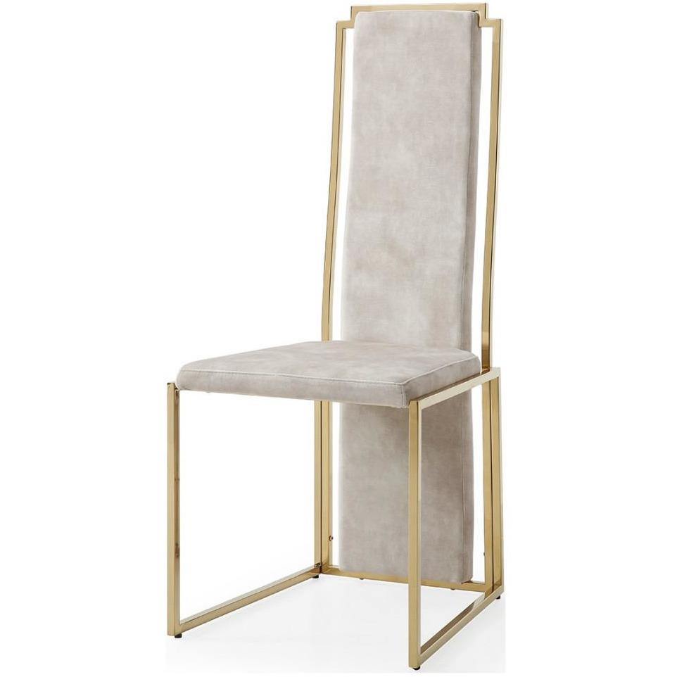 Sumo Dining Chair, Natural adore beige fabric, Polished gold stainless steel frame.