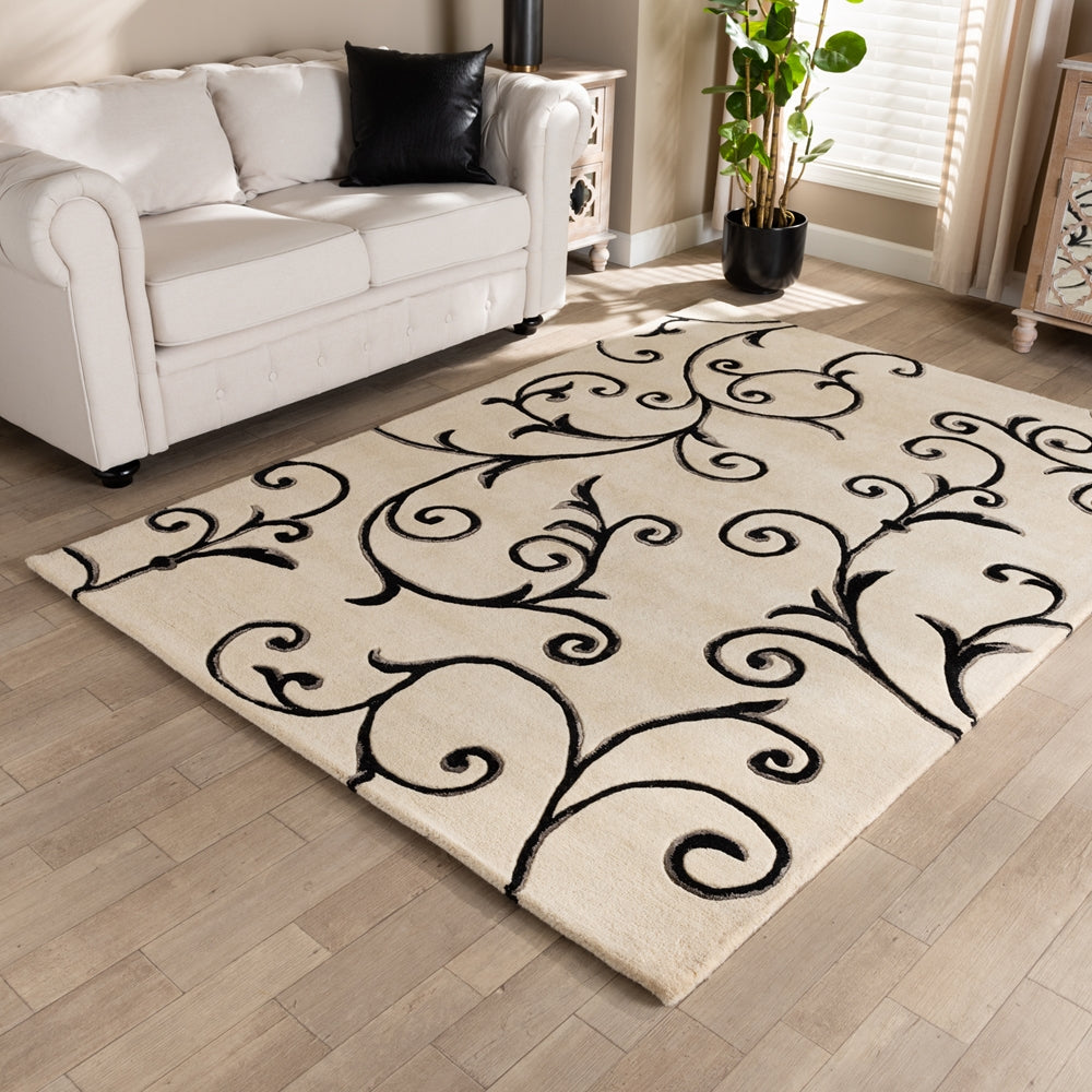 Trellis Modern and Contemporary Ivory and Black Hand-Tufted Wool Blend Area Rug