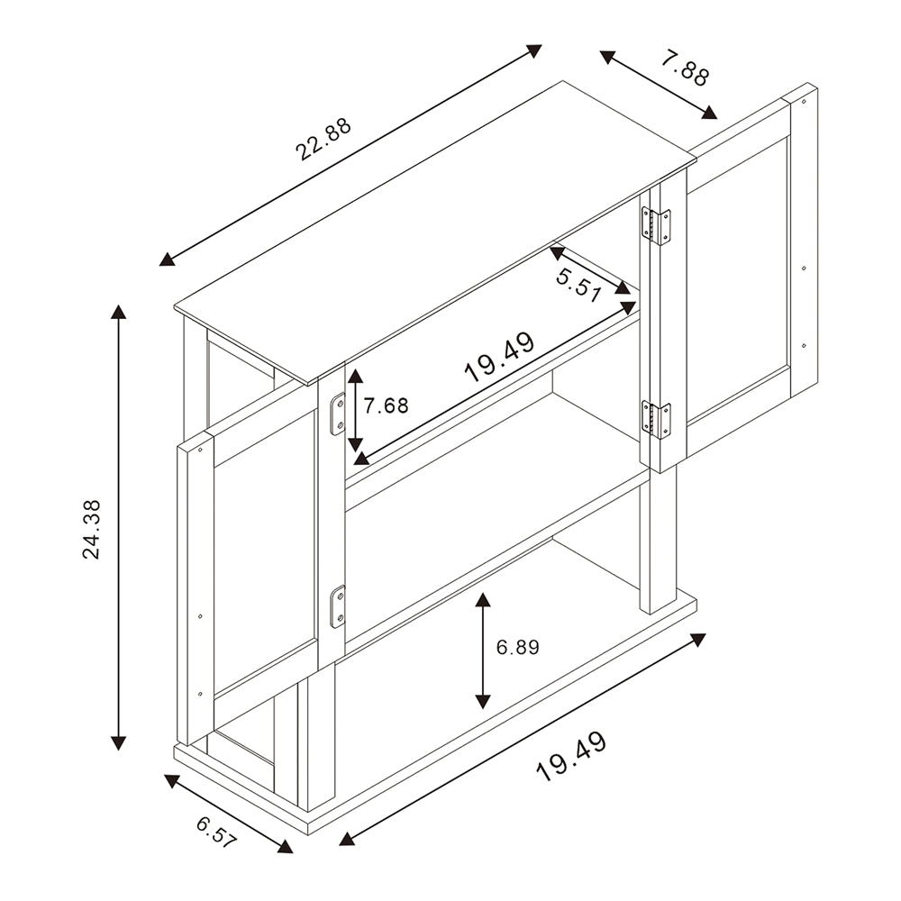 Expand the potential of your bathroom with the Turner storage cabinet. Made in China, this cabinet is crafted from sturdy wood showcasing a brilliant white finish. An open shelf creates a convenient display for bathroom essentials, while two shelves located behind the doors offer secure storage space. Requiring assembly, the Turner features two silver-tone metal handles for a contemporary touch that stands out against the bright white finish. Inset paneling completes the look with balanced texture, making the Turner cabinet an exceptional solution to bathroom storage.