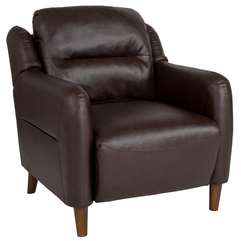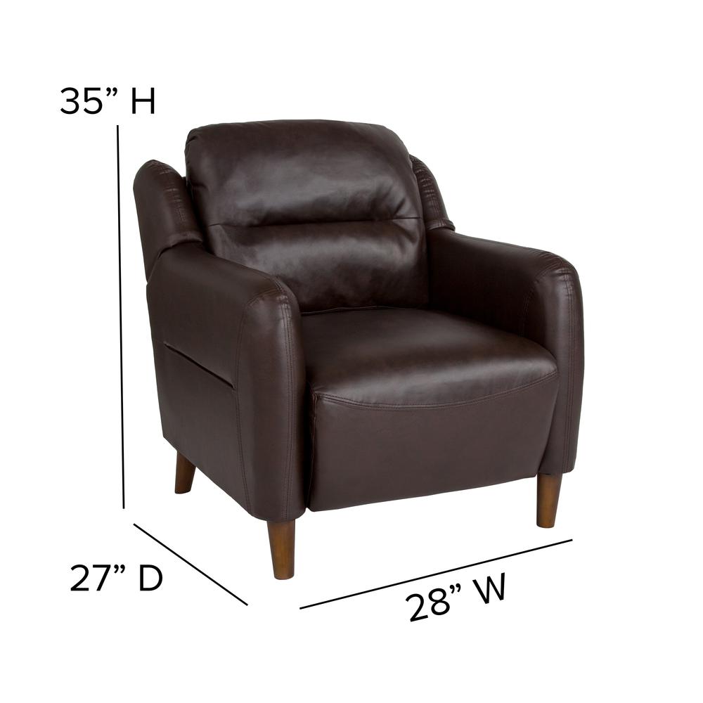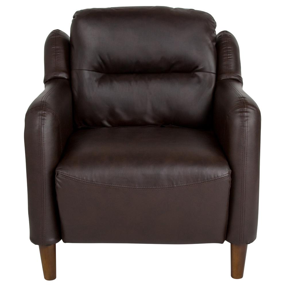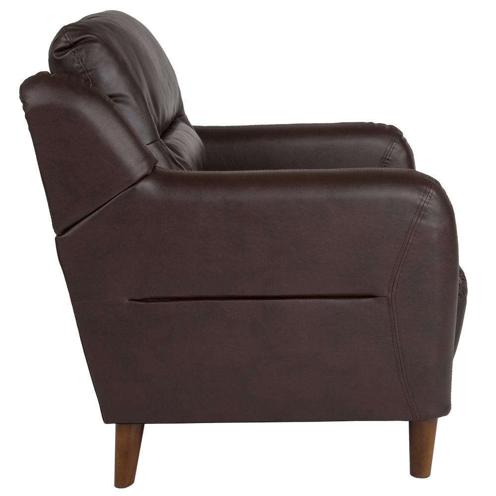 Upholstered Bustle Back Arm Chair in Brown LeatherSoft