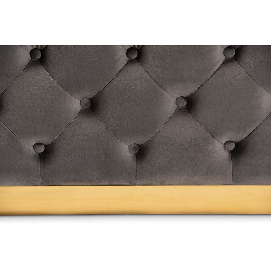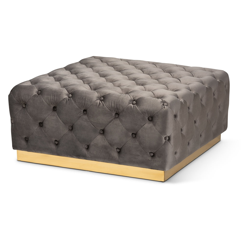 Verene Glam and Luxe Grey Velvet Gold Finished Square Cocktail Ottoman