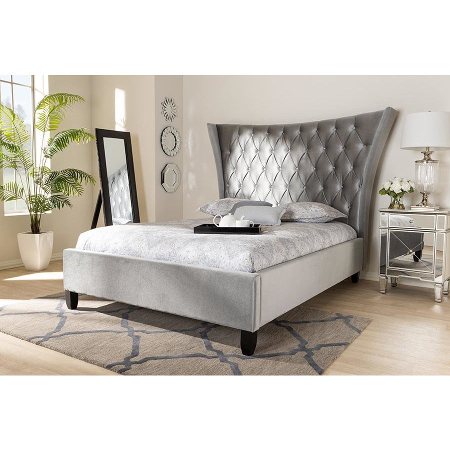Viola Glam Grey Velvet and Button Tufted Queen Size Platform Bed