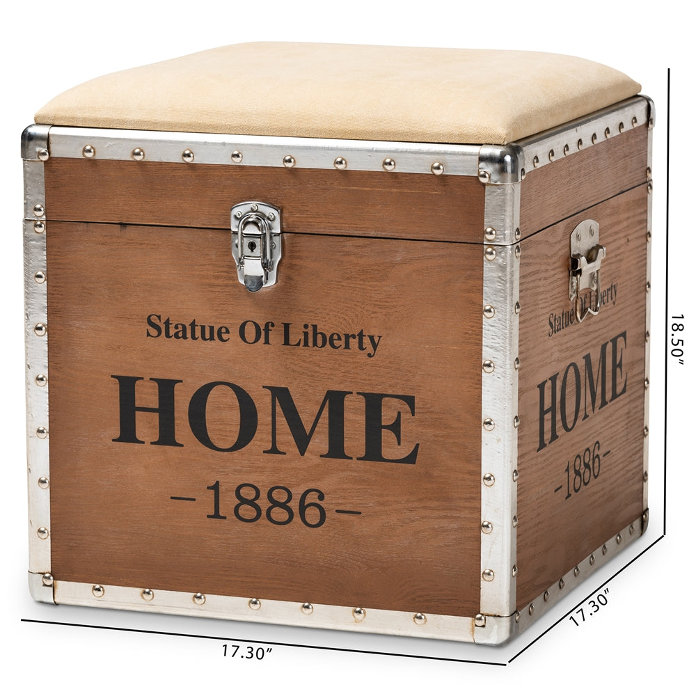 Violetta Vintage Industrial Beige Fabric Upholstered Wood Storage Trunk Ottoman