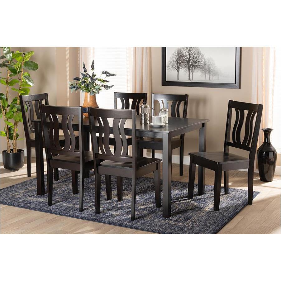 Zamira Modern and Contemporary Transitional Dark Brown Finished Wood 7-Piece Dining Set